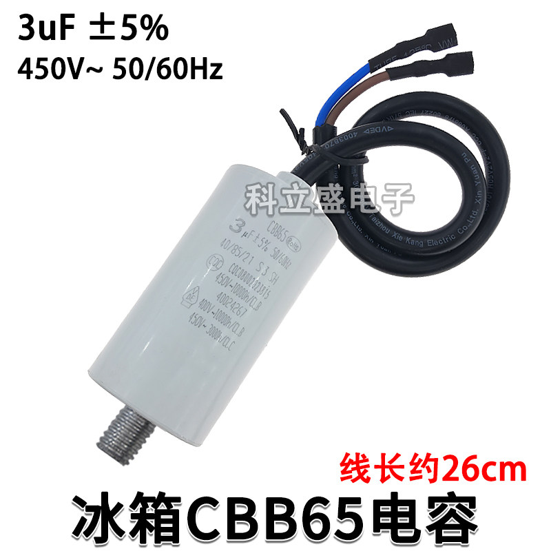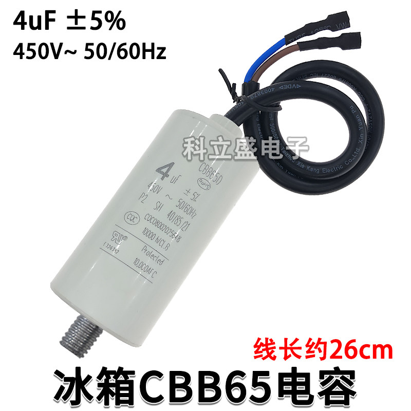 5uF 4uF 450V 3uF CBB65电容冰柜电冰箱电容带线启动器电容2.5uF