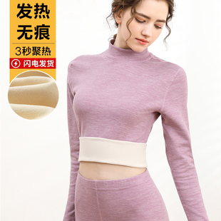 冬 打底衫 中高领德绒保暖内衣女套装 加厚加绒发热无痕打底秋衣秋裤