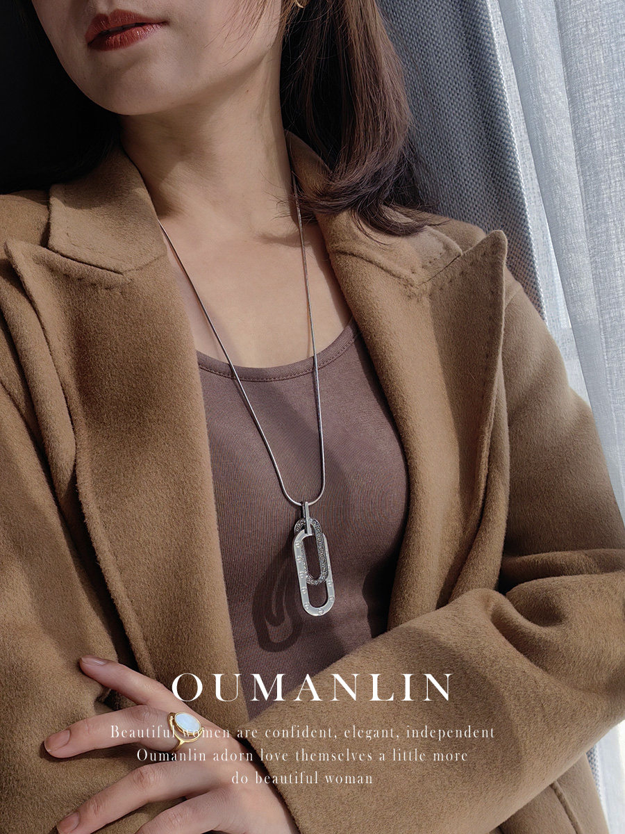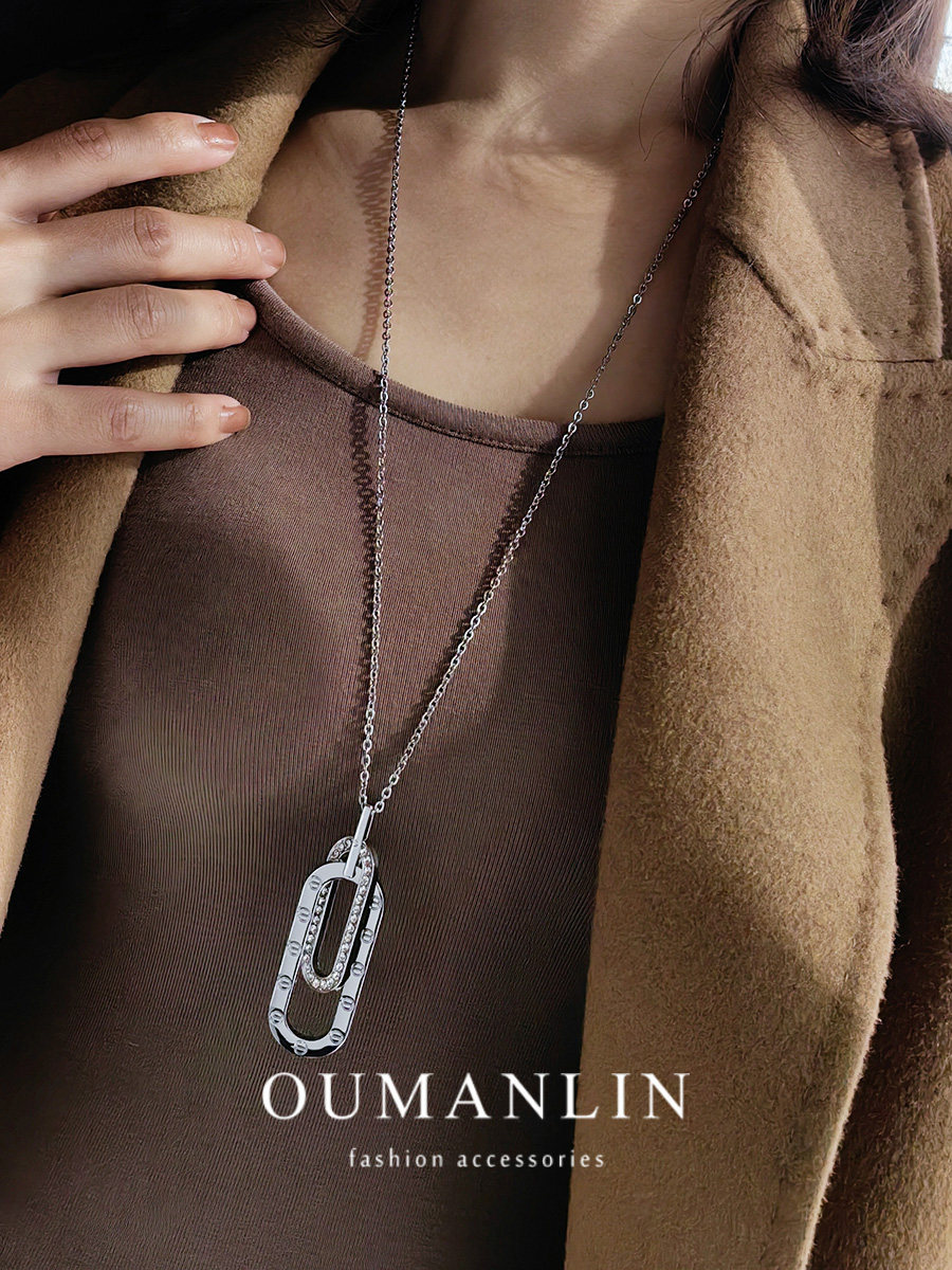 飞船吊坠灰色珍珠项链女小众设计感毛衣链长款 高级叠戴锁骨链配饰