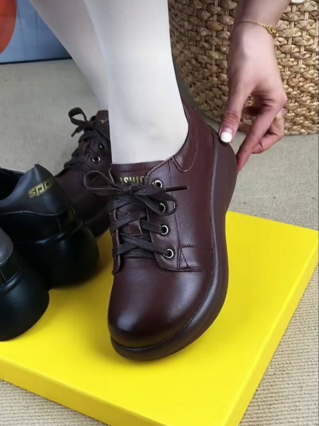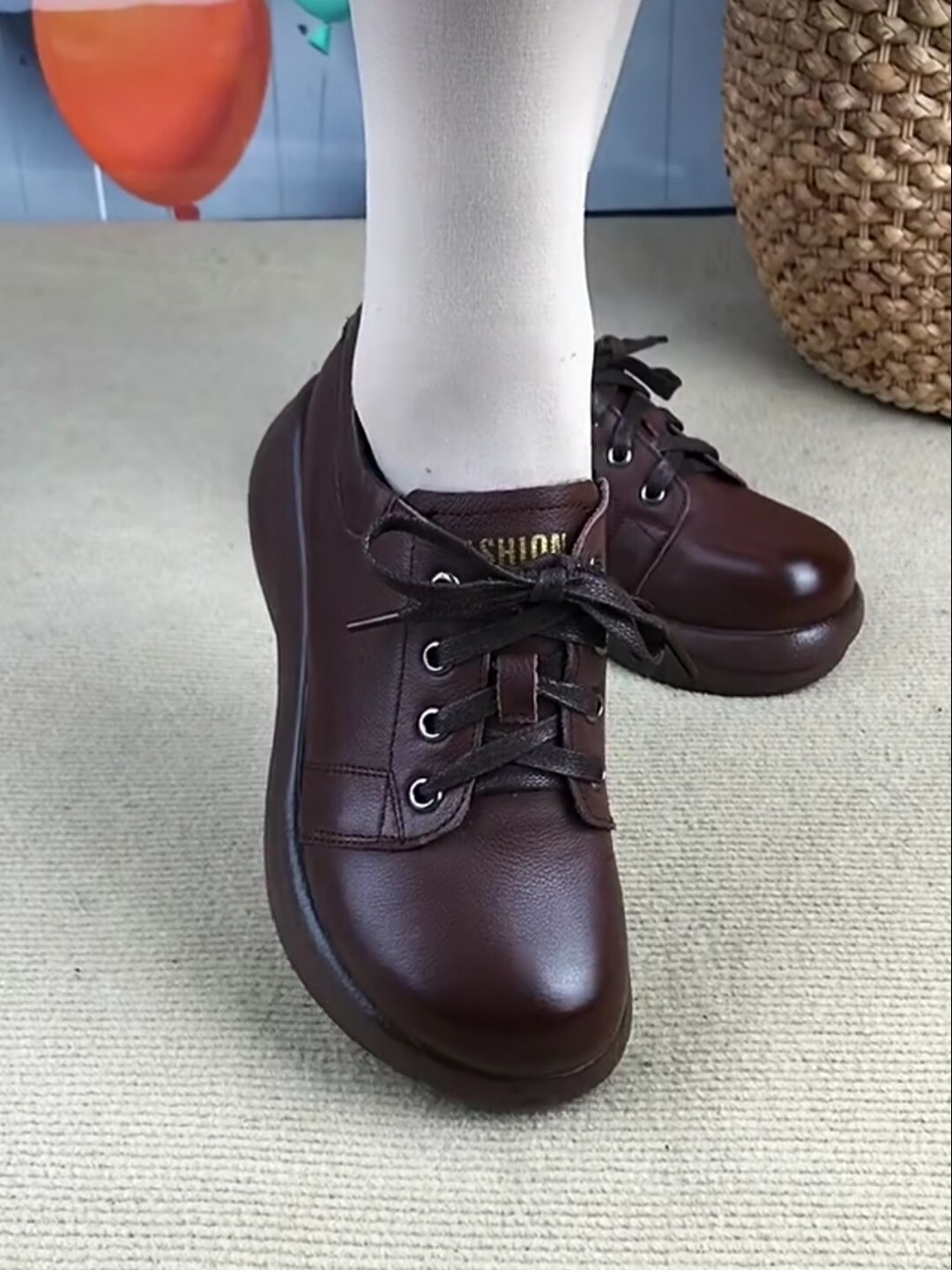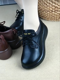 女真皮系带妈妈鞋 真皮单鞋 厚底单鞋 英伦风小皮鞋 女2026年春秋新款