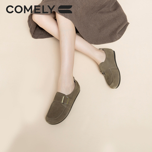 女2024年春季 单鞋 新款 休闲魔术贴平底鞋 复古勃肯鞋 康莉舒软乐福鞋