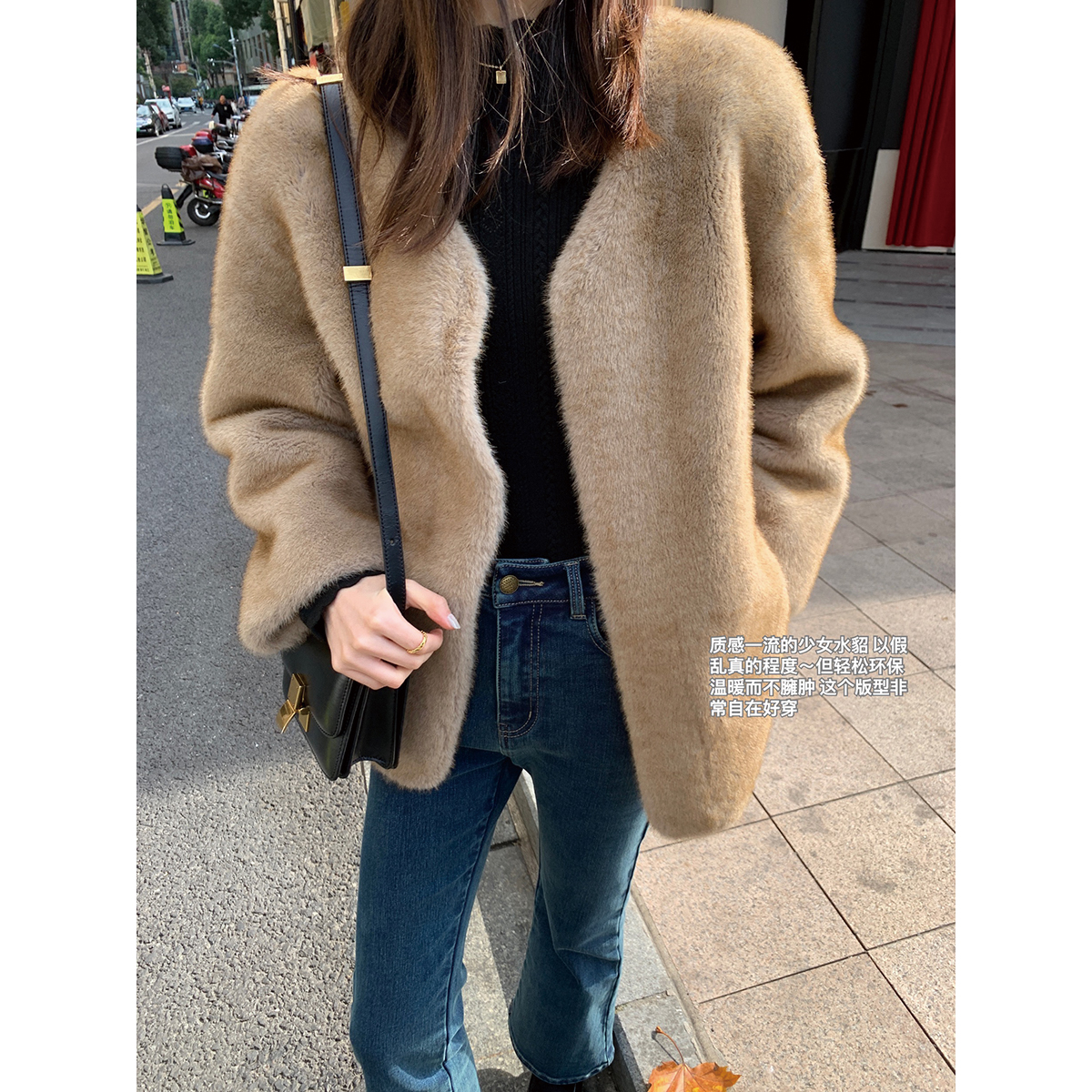 环保皮草外套马甲女 秋冬仿水貂短款 许许然Madeleine 琥珀千金