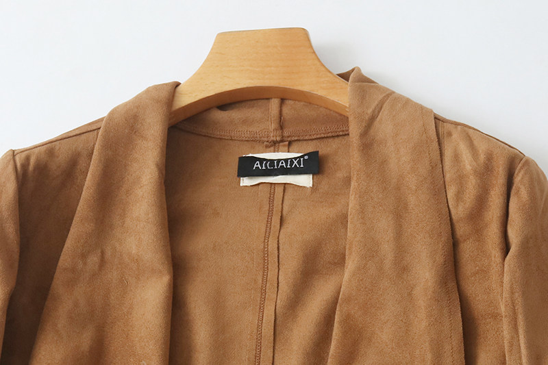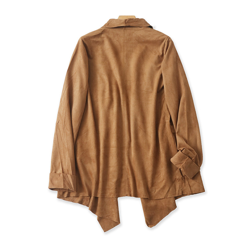 春秋新款 外贸女上衣外套 长袖 风衣 09284 宽松时尚 麂皮绒翻领披肩