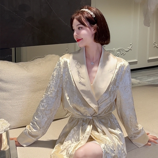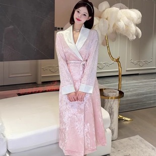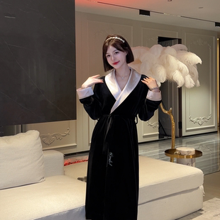 中长款 冬保暖睡衣家居服套装 睡袍毛绒浴袍加厚情侣款 三层加厚