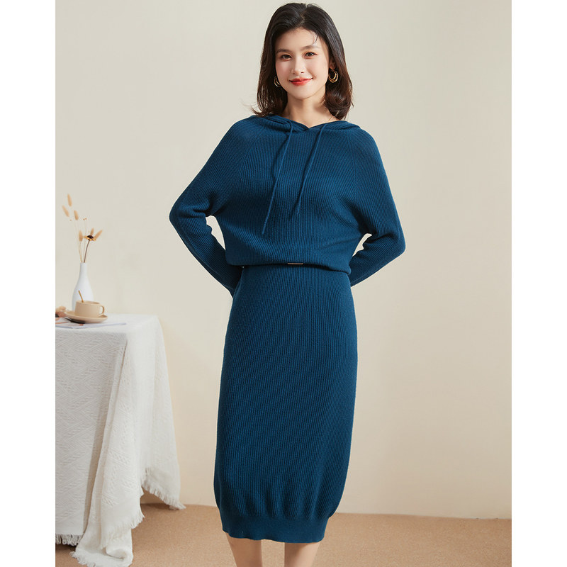 针织连衣裙女可拆披肩裙子修身 海军领长袖 两件套 韩系温柔 MULVAN