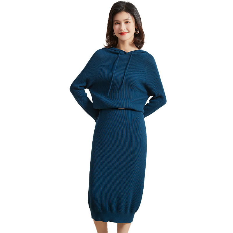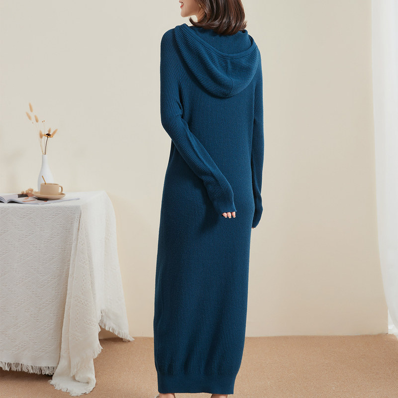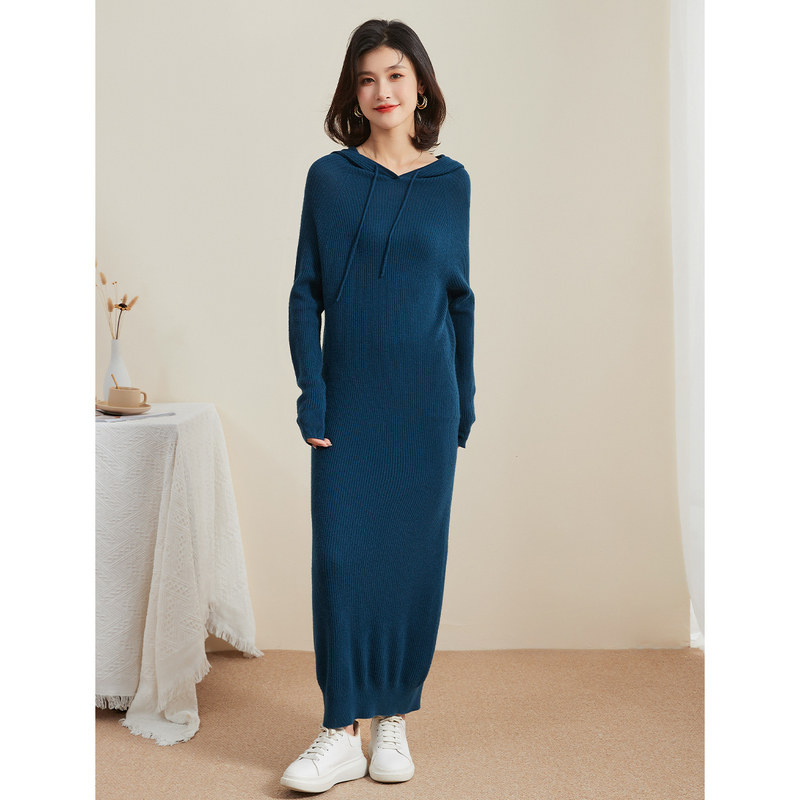 DM100大码 百搭宽松正肩双面绒连帽卫衣连衣裙 百分百女微胖mm冬季