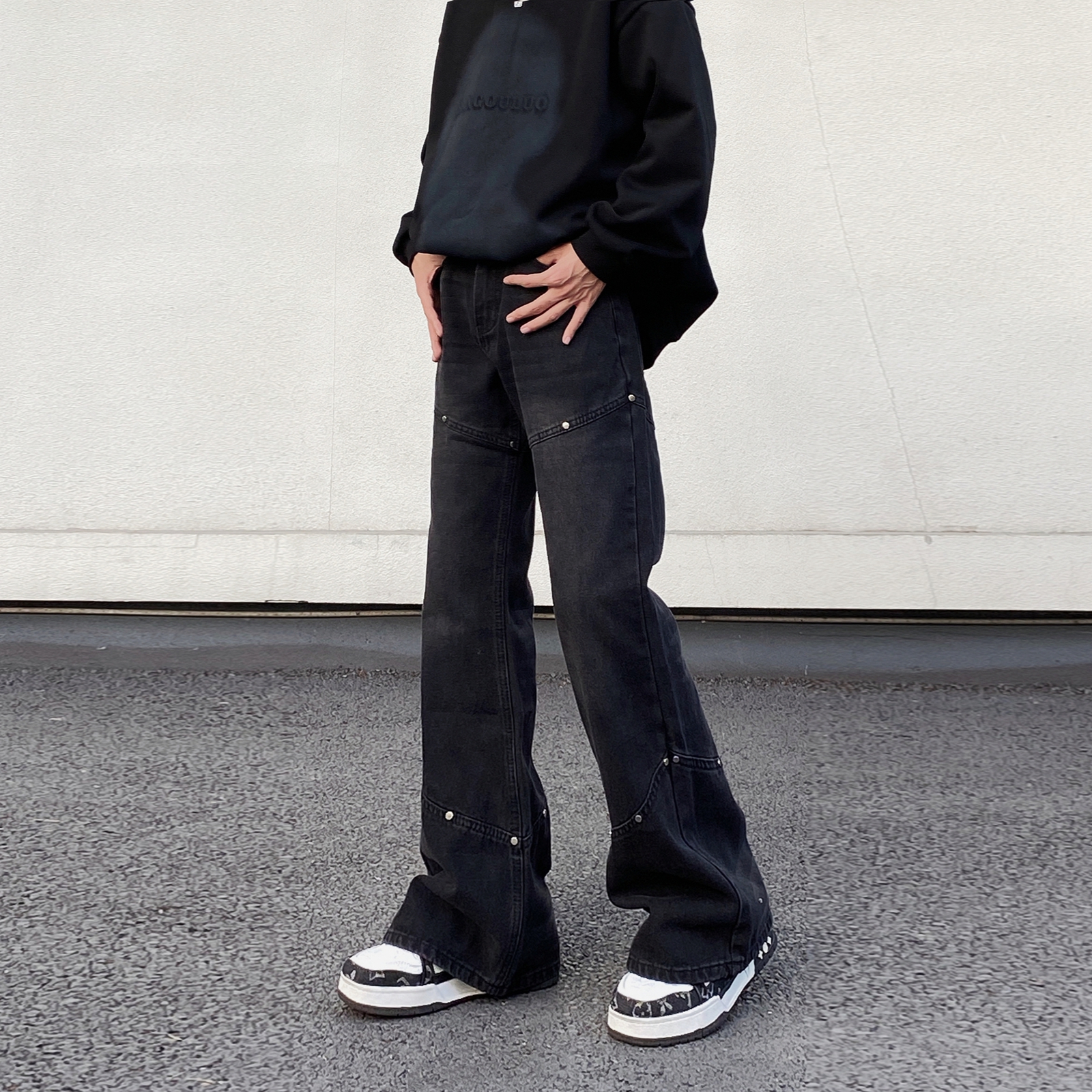 新品 2025秋季 复古做旧水洗丹宁宽松时髦宽松直筒牛仔长裤 GXG男装