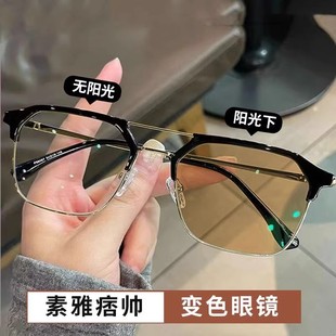 文艺复古痞帅半框眼镜男款 近视可配度数防蓝光眼镜女斯文理工男潮