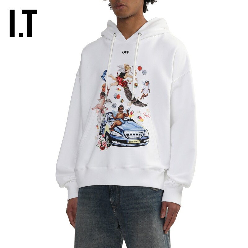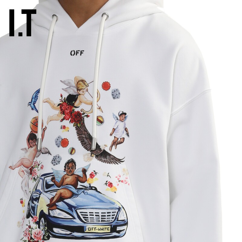 天使图案印花连帽卫衣新款 WHITE™男装 OFF