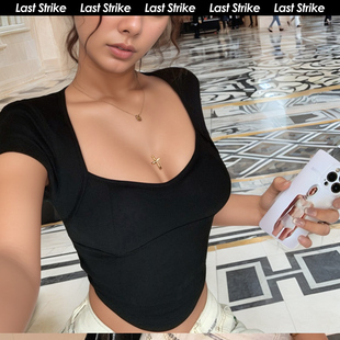 Last T恤 Strike瑜伽服上衣女夏美背带胸垫运动休闲训练服方领短袖
