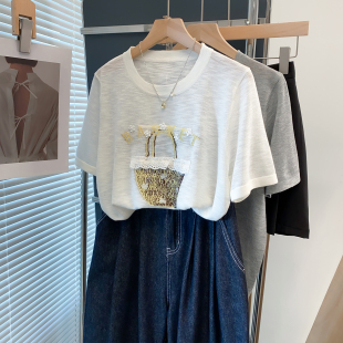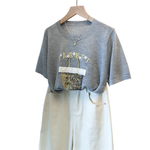 t恤衫 细针圆领针织衫 宽松慵懒风外穿上衣薄短袖 新款 潮 女2026夏装