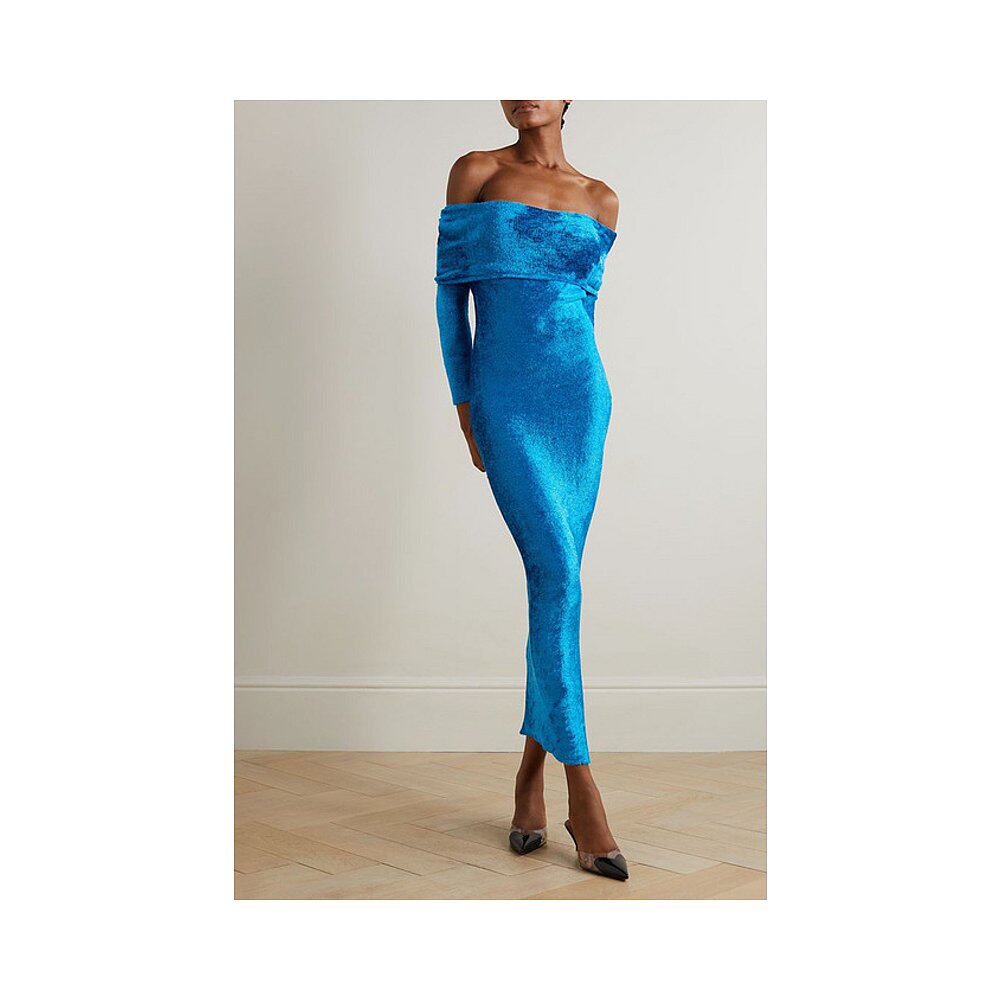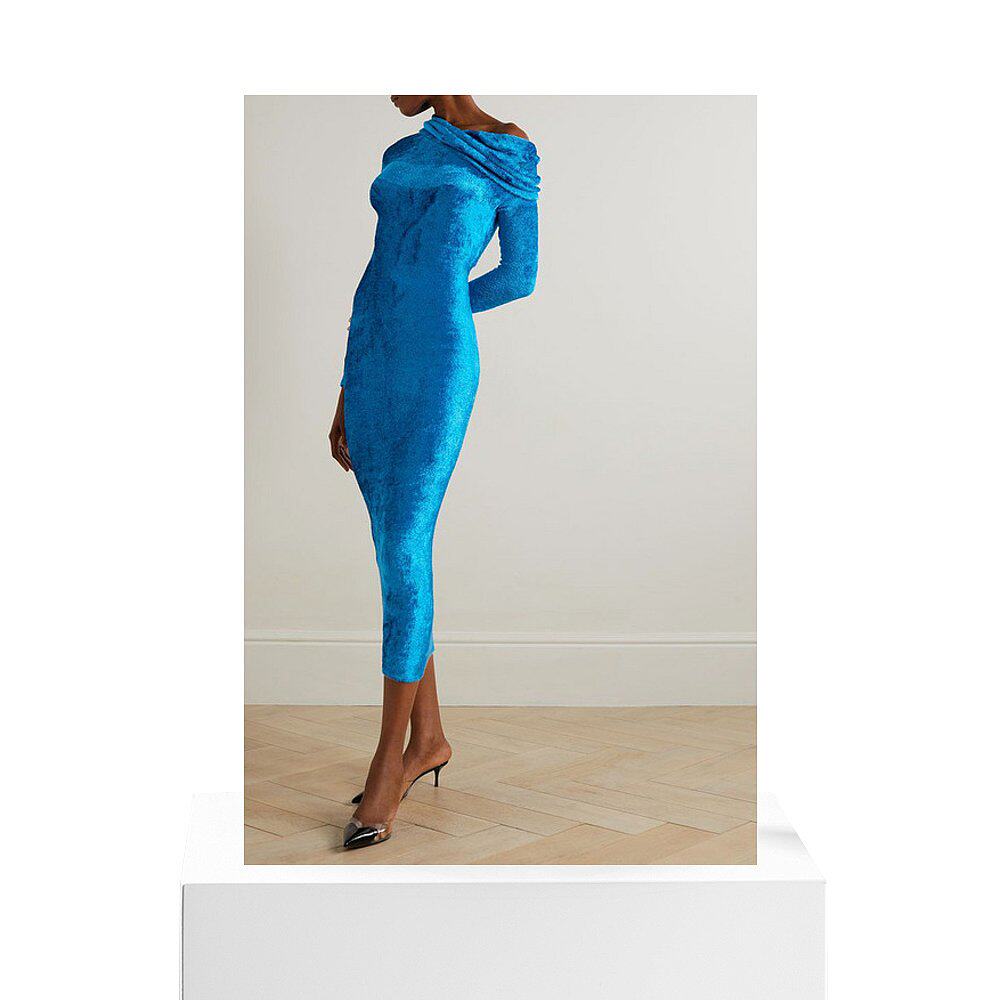 露肩弹力天鹅绒中长连衣裙 1h可退 女士 Alaia AA9R 香港直邮潮奢