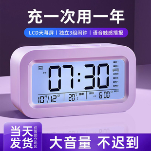 闹钟学生专用起床神器智能电子时钟儿童钟表男强力显示语音夜光