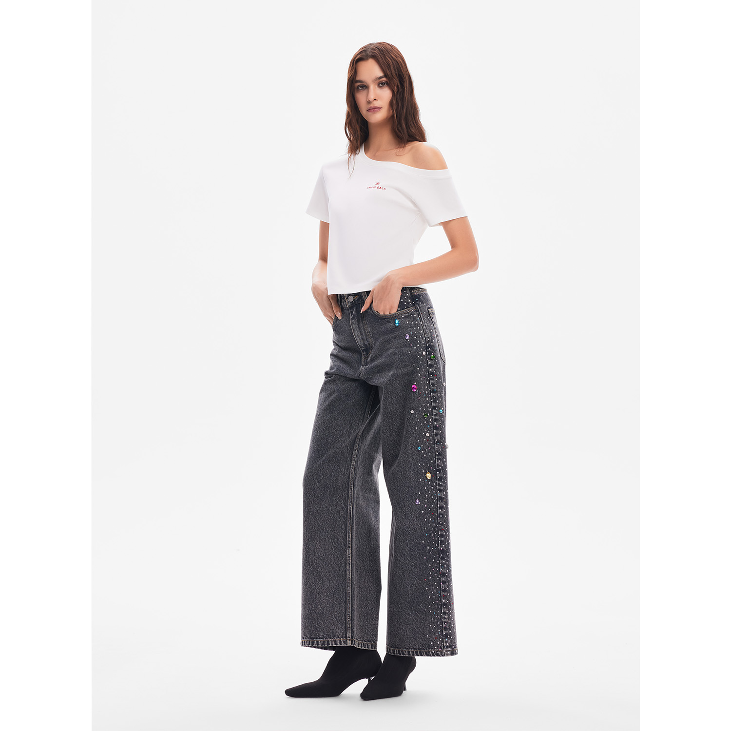 Back白色短袖 斜肩短款 T恤女2025夏季 百搭时尚 上衣 新款 Called