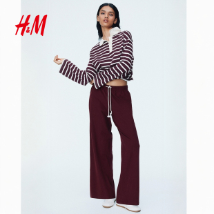酒红色气质休闲阔腿慢跑裤 春季 1292508 休闲裤 HM女装