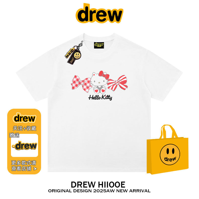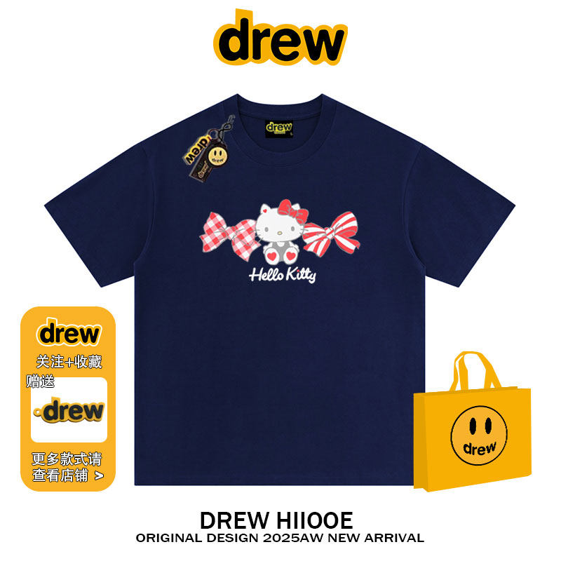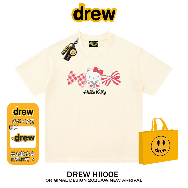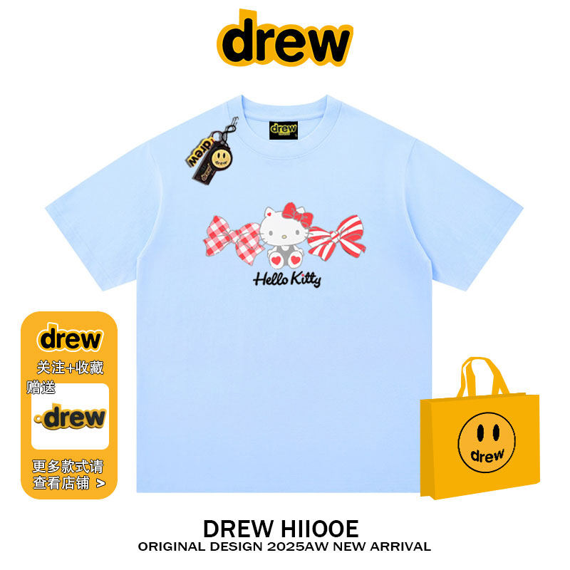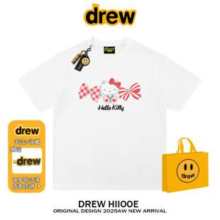 纯棉宽松情侣款 t恤男女夏季 上衣 潮牌卡通Kitty猫印花短袖 drew美式