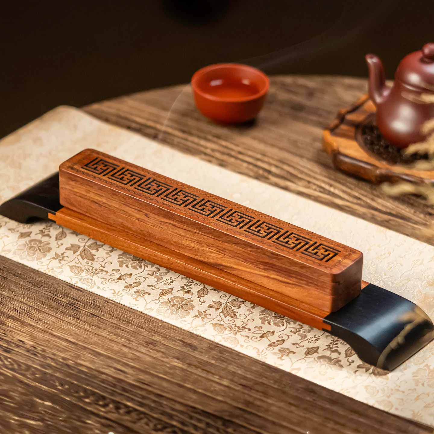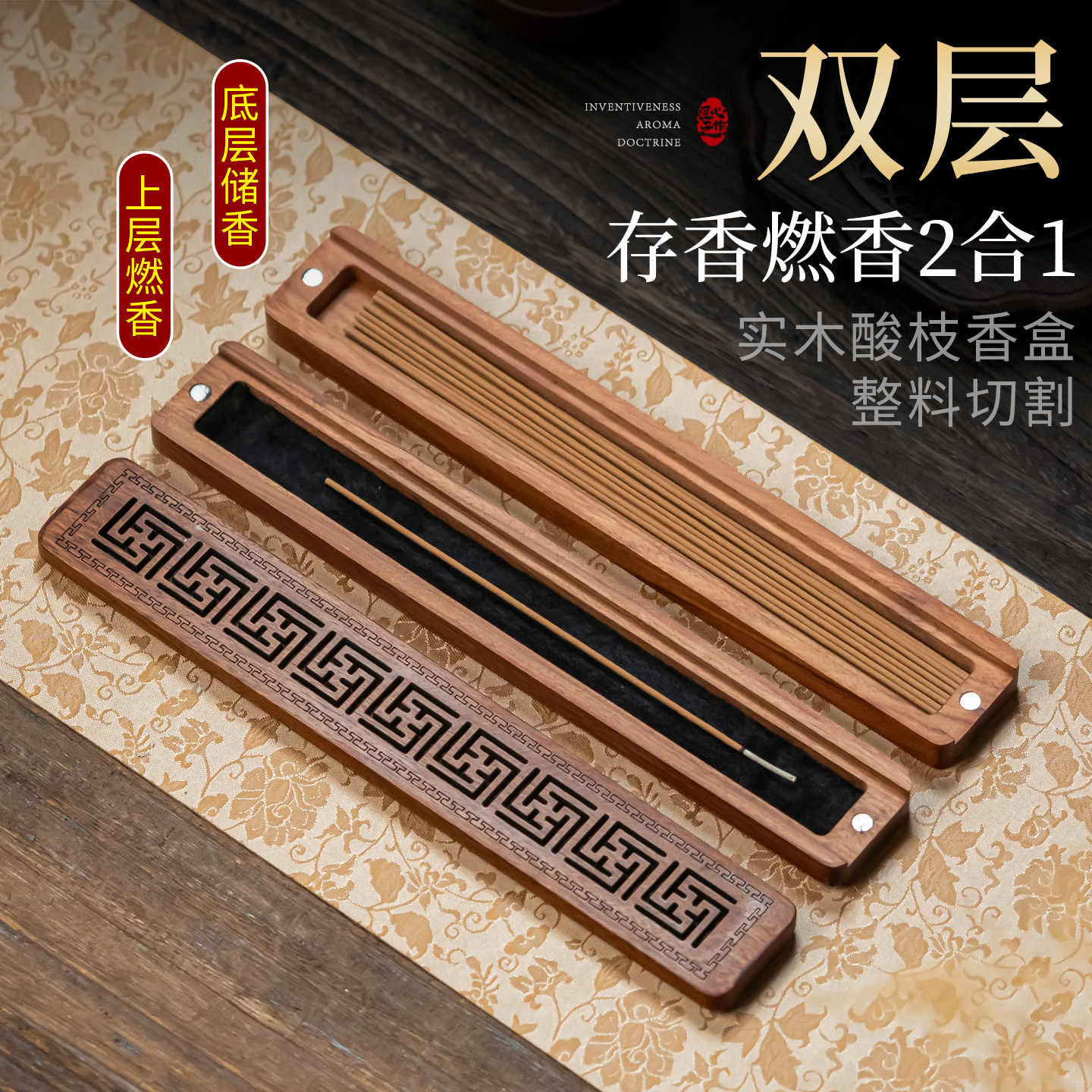 酸枝木质双层卧香盒随身香炉家用线香底座燃一体收纳旅行便携香盒