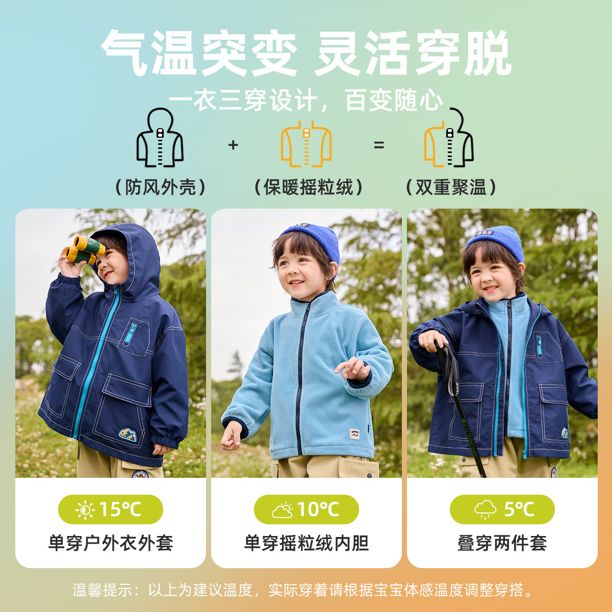 衣服女童秋装 儿童三合一外套班服户外男童新款 宝宝童装 杜邦三防