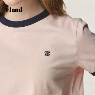上衣2025秋季 Eland衣恋T恤女撞色圆领设计舒适短袖 新款 100%棉