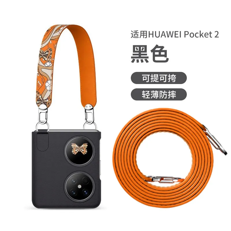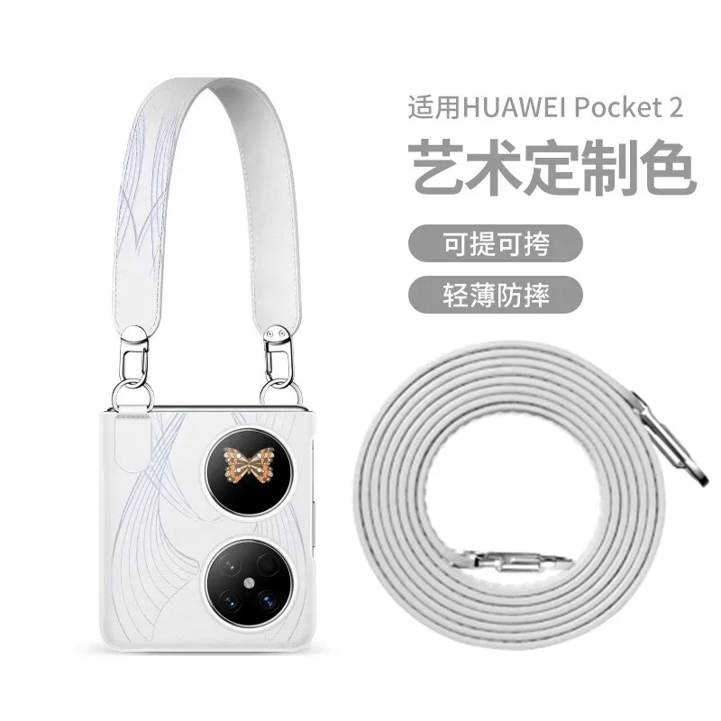适用华为pocket2手机壳艺术手提折叠屏新款 斜跨链条全包防摔