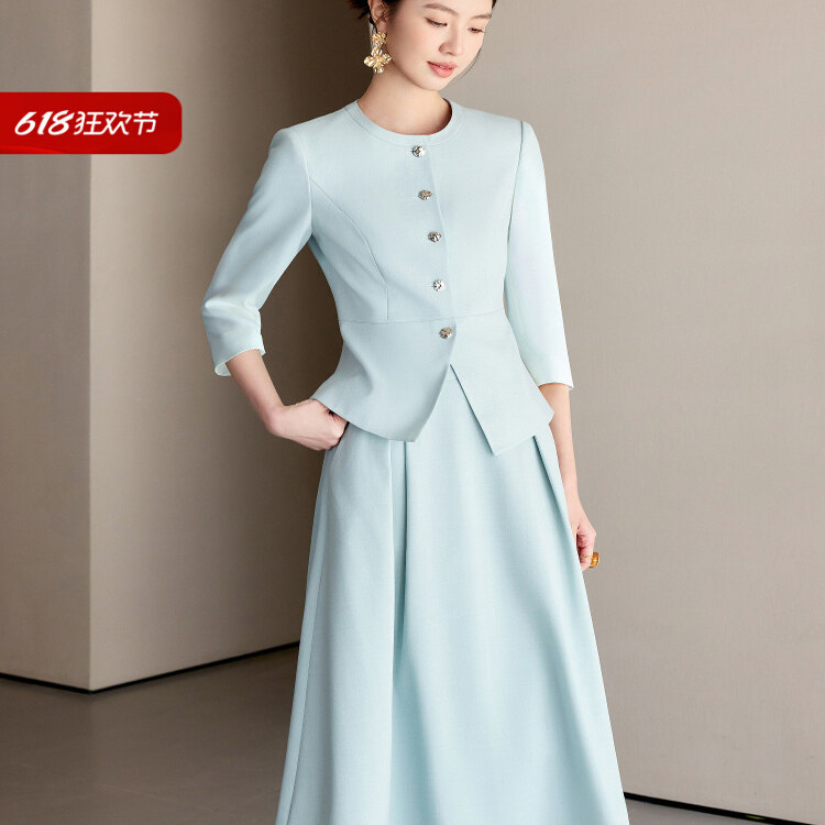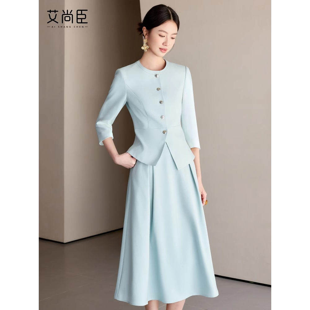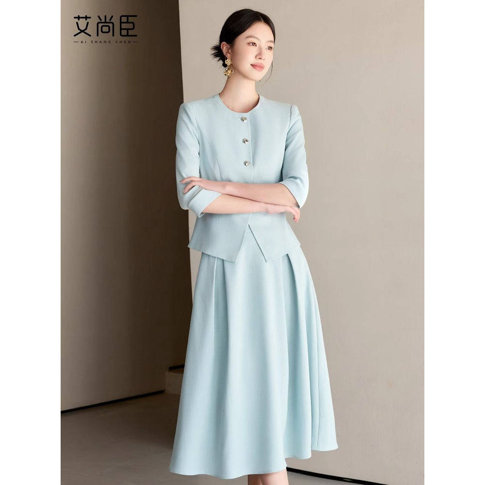 女高级感通勤职业套裙名媛蓝色 套装 艾尚臣小香风时尚 主持讲师西装