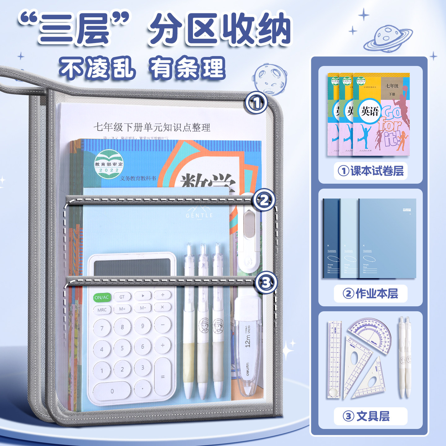 得力L型科目分类袋小学生学科收纳袋文件袋书袋课本书本作业试卷装 书手提袋子中学生资料拎书大容量补习文具