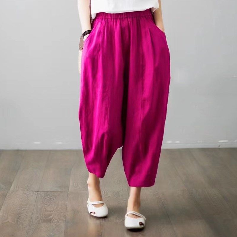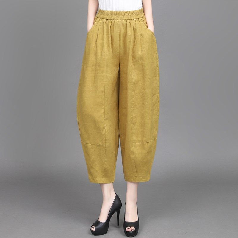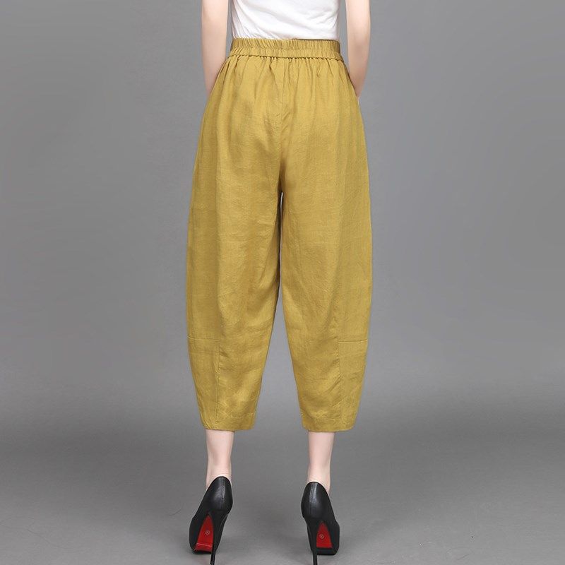高腰显瘦纯色亚麻灯笼裤 复古休闲哈伦裤 女春秋宽松大码 棉麻八分裤
