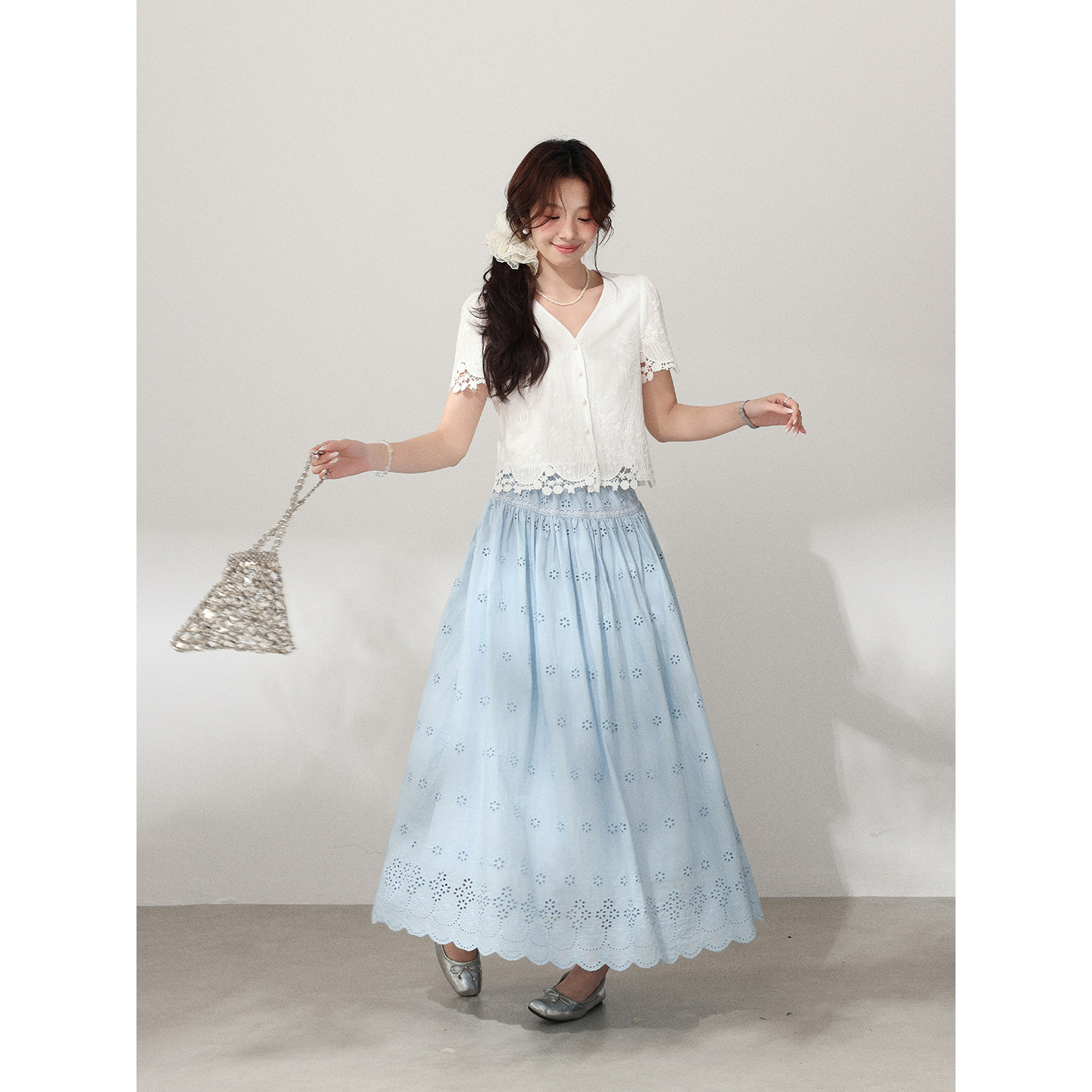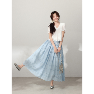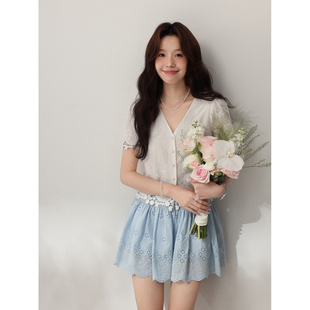 镂空绣花松紧腰短裙带安全裤 高智感时尚 勿忘我 清仓Even一雯