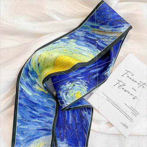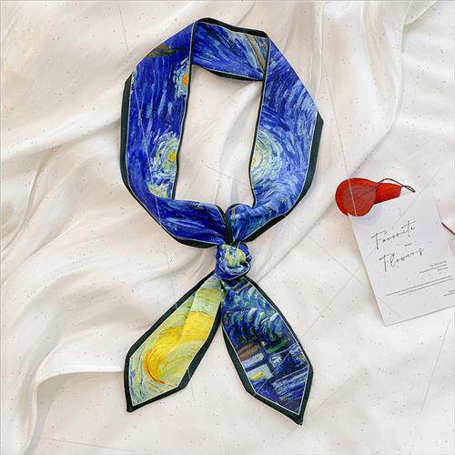Gogh ribbon painting small sky starry Van scarf silk oil New