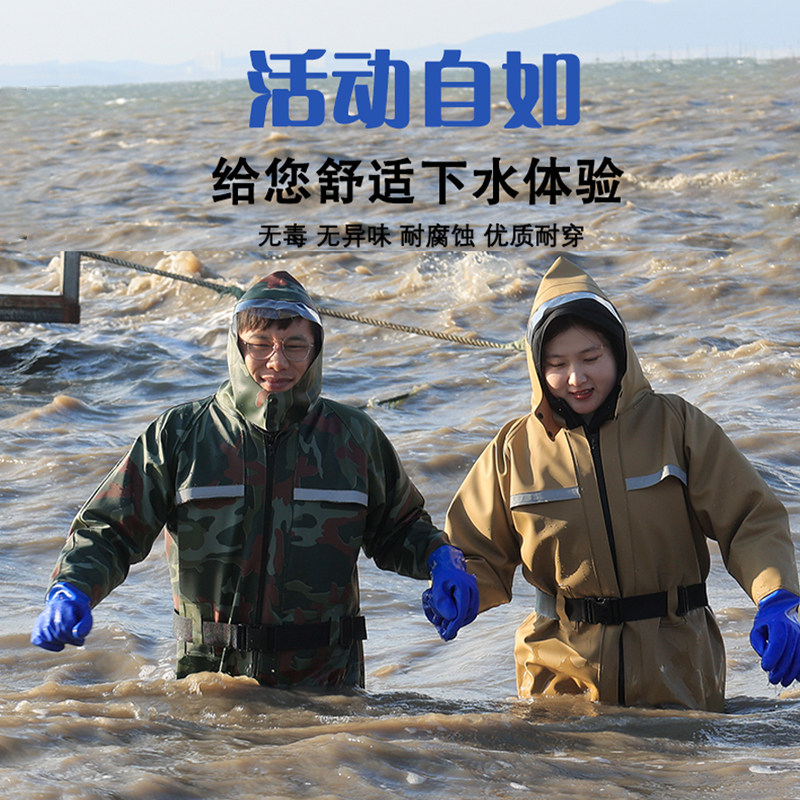 男女全身连体防水下水裤 子 加厚PVC耐磨防裂赶海户外接雨靴皮叉裤