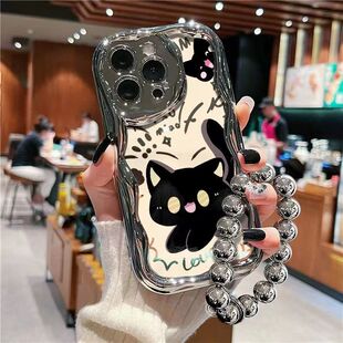 xr网红7P 电镀银黑猫适用苹果15promax手机壳iPhone14 12mini防摔x 8plus保护套xs软max女se可爱 13pro新款