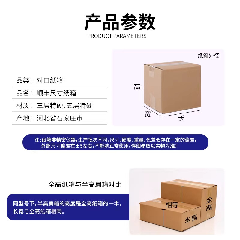 纸箱半高物流快递发货包装 纸盒搬家纸皮箱打包盒加厚加硬打包纸箱
