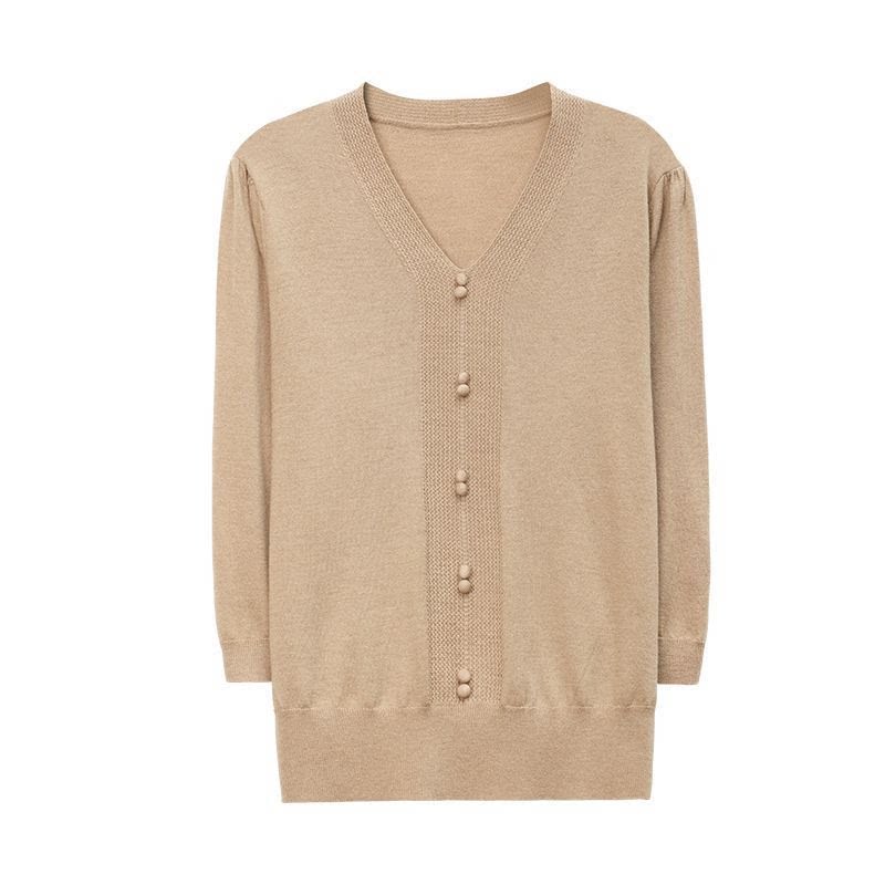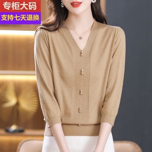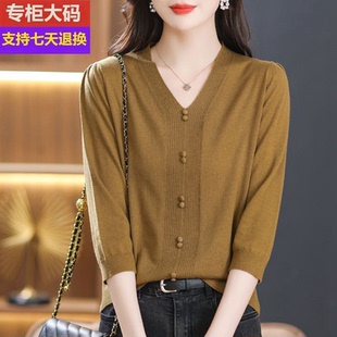 上衣女薄款 桑蚕丝V领七分袖 妈妈装 t恤衫 胖mm大码 洋气小衫 春夏新款