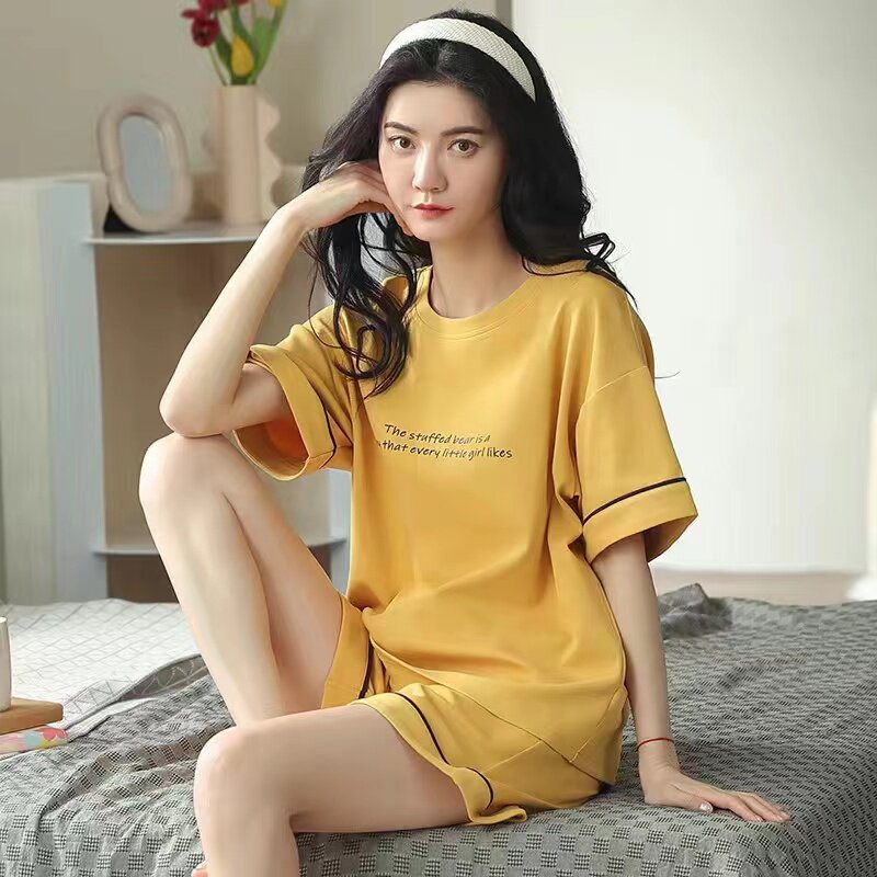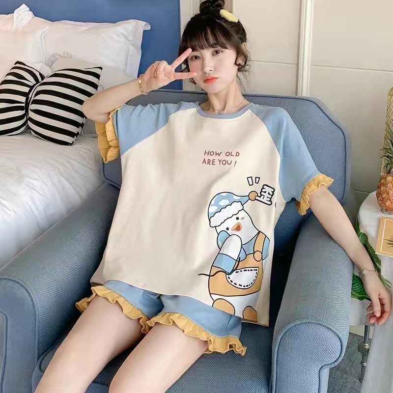2024年新款 夏天睡衣女夏季 纯棉两件套装 短袖 可爱可外穿家居服 薄款