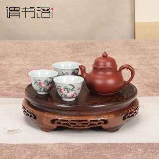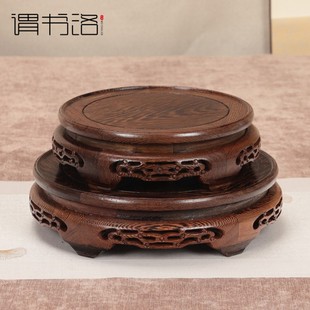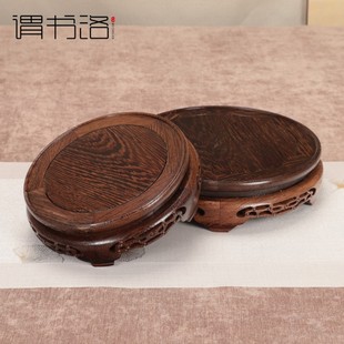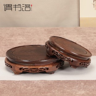 红木雕刻工艺品奇石托架圆形实木质佛像小摆件石头花盆花瓶托底座