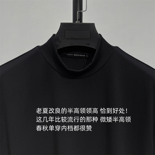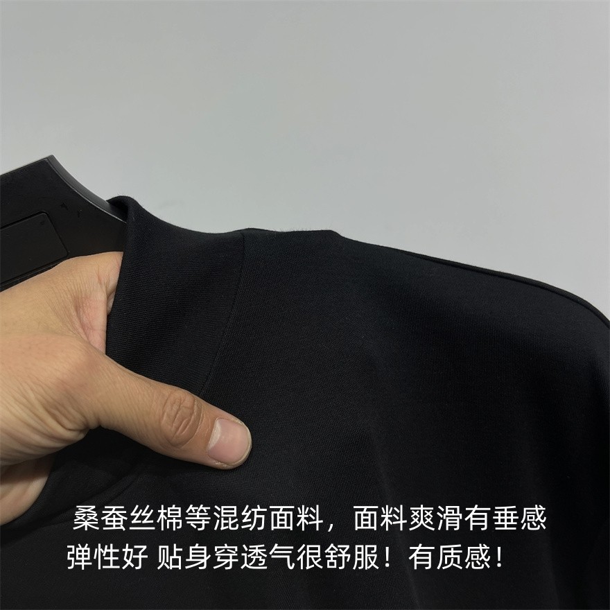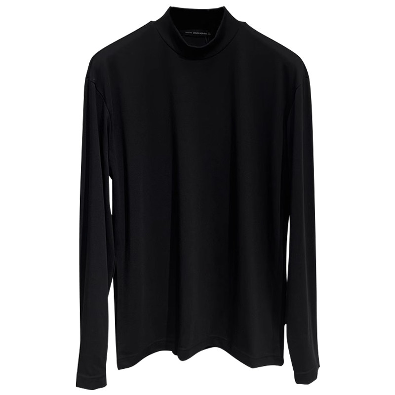 T恤衫 透气抗皱弹力半高领内搭长袖 纯黑色 DH高端系秋季 桑蚕丝棉