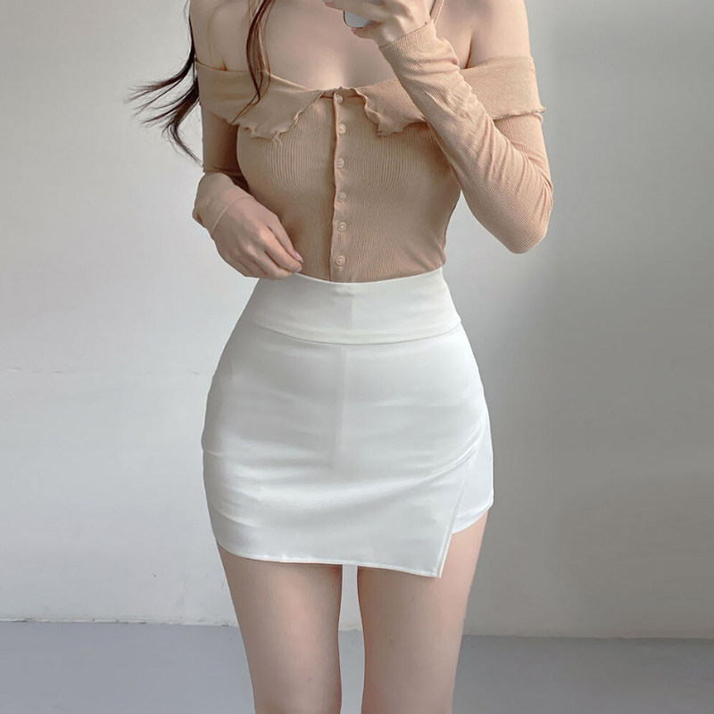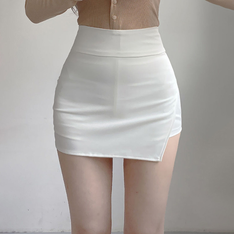 白色包臀半身裙女夏季 不规则包裙御姐一步裙短裙 高腰弹力性感韩版