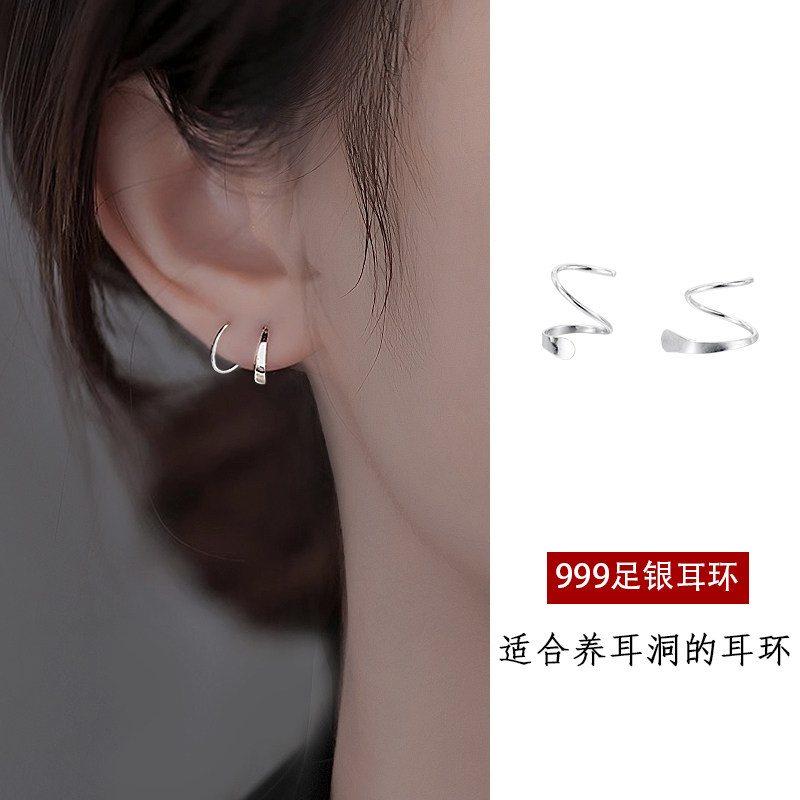 S999纯银耳环耳圈耳骨钉养耳洞耳骨环高级感素圈耳扣耳钉女耳饰男