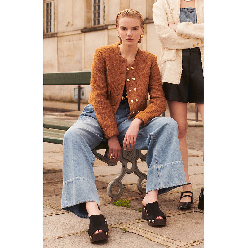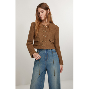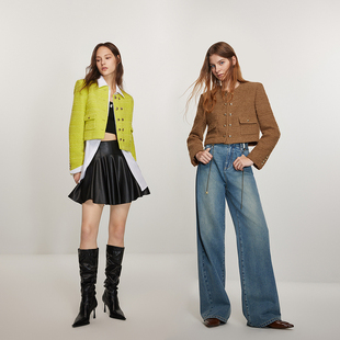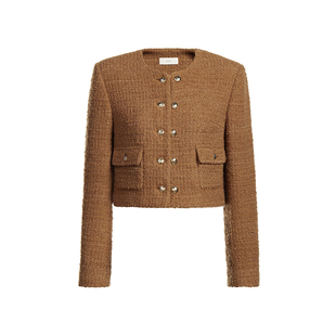 法式 早春短款 箱型 羊毛花纱小香风外套女2024新款 ochirly欧时力