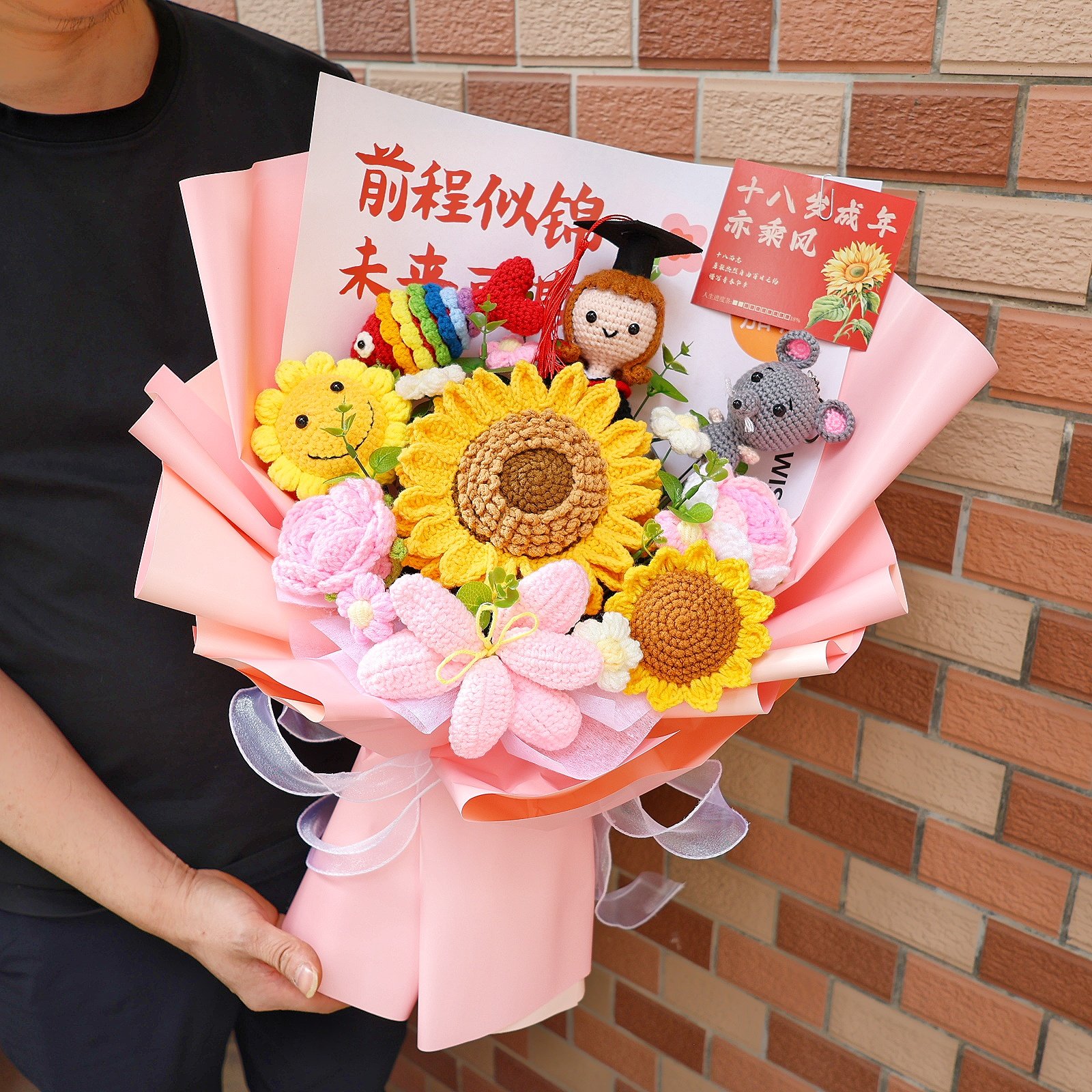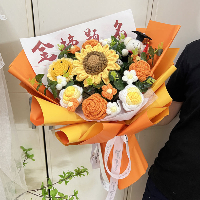 迷你小花束见面玫瑰花向日葵成品礼物口袋永生花仿真花干花手捧花