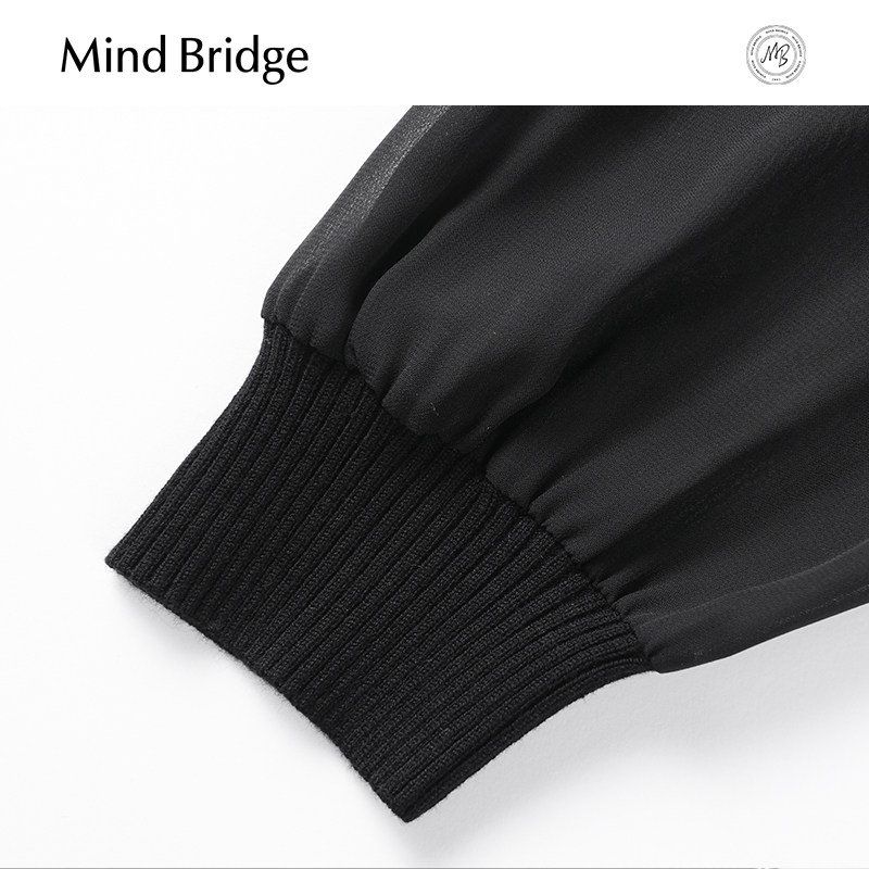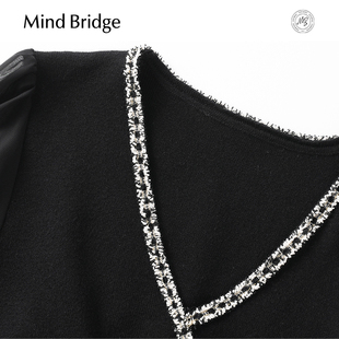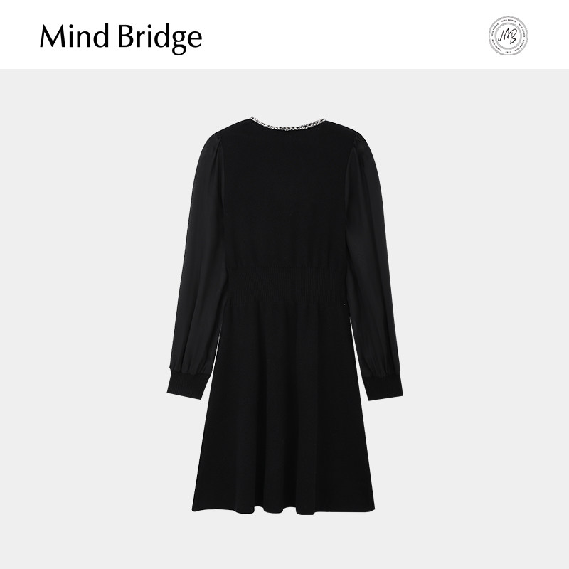 长袖 收腰连衣裙秋季 赫本风小黑裙V领裙子 MindBridge女士泡泡袖