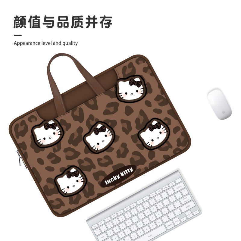 湘融可爱凯蒂猫笔记本电脑包适用手提女苹果15.6寸联想小新13寸华为matebook14上班通勤办公平板收纳包新款