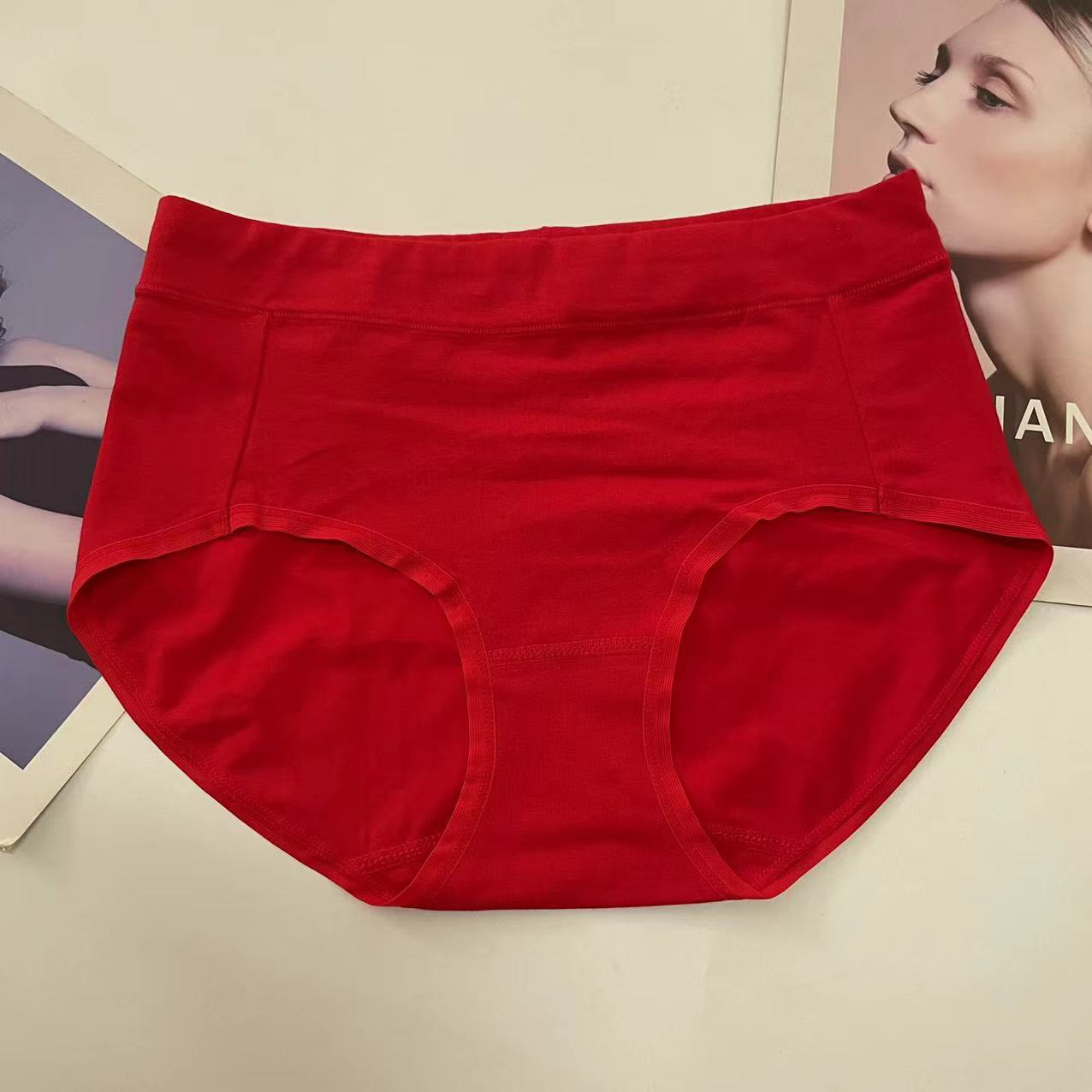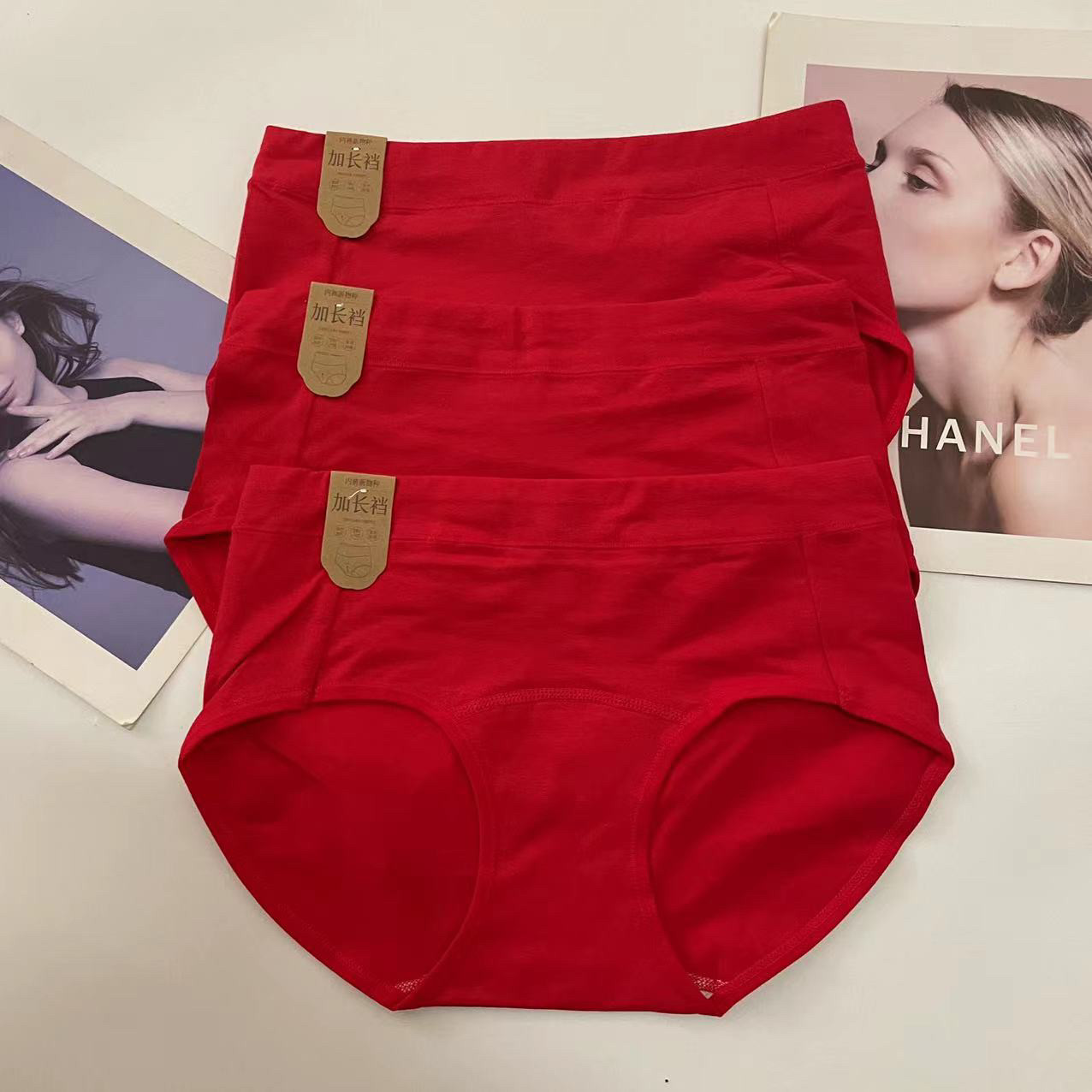 头中腰包臀透气棉质红色三角内裤 女纯棉三角裤 头 大红色内裤 三条装
