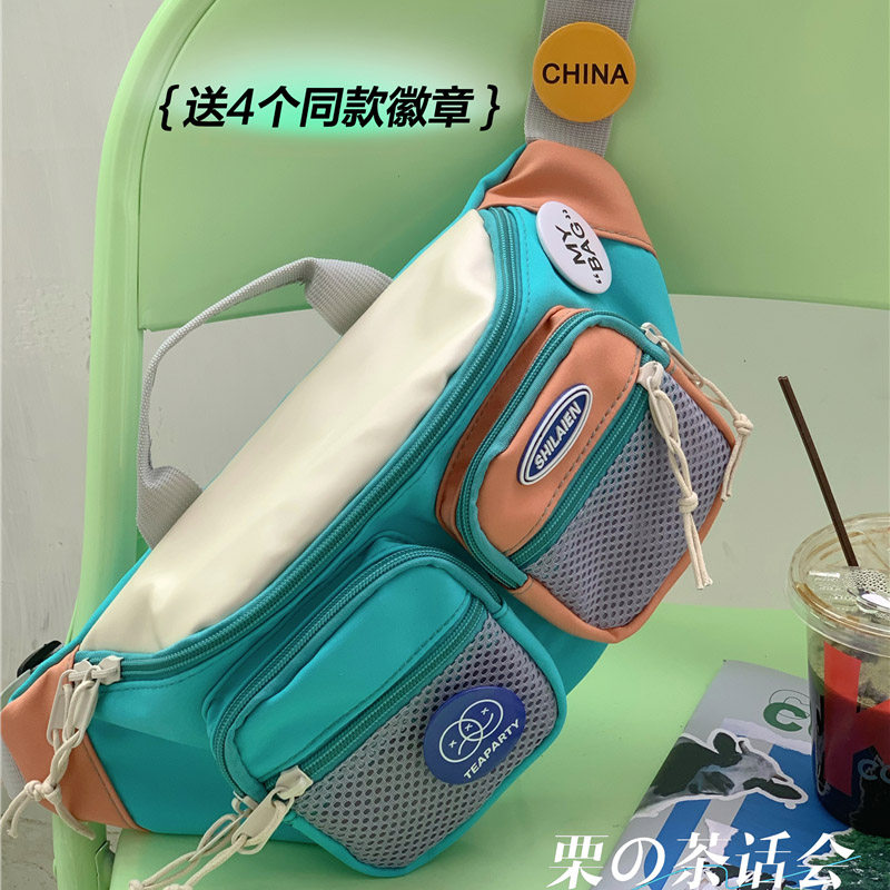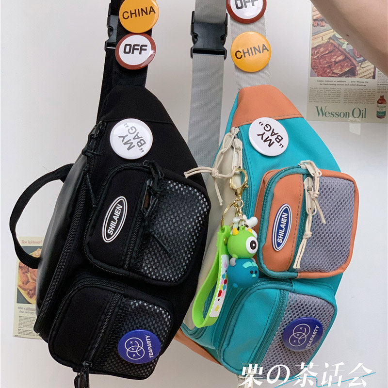 运动胸包男2024新款 多功能斜挎包骑行帆布腰包 设计感小众百搭工装