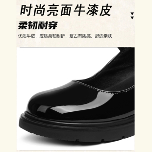 真皮玛丽珍女鞋 大码 鞋 女士软底学生皮鞋 子中跟单鞋 漆皮走秀高跟鞋