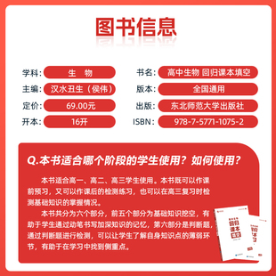 育甲2025新版 汉水丑生高中生物回归课本填空2.0汉水丑生高中生物基础知识回归教材生物知识点大全高中生物专题训练全国通用
