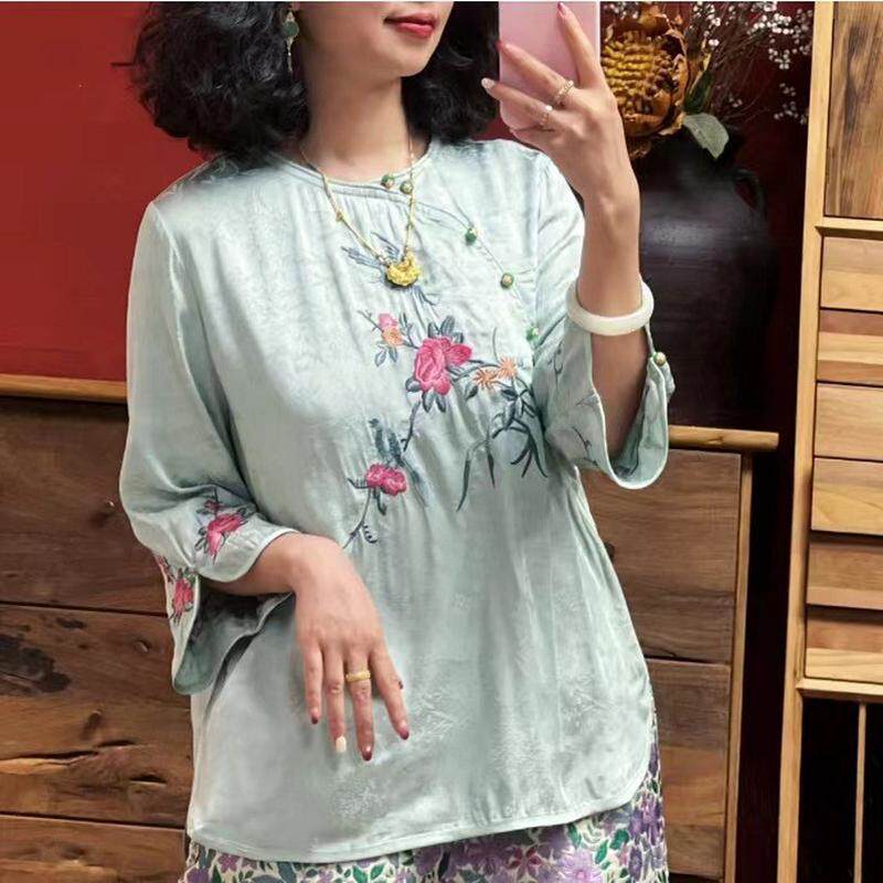 羊在在新中式 SY24XL1091 刺绣提花国风上衣女夏季