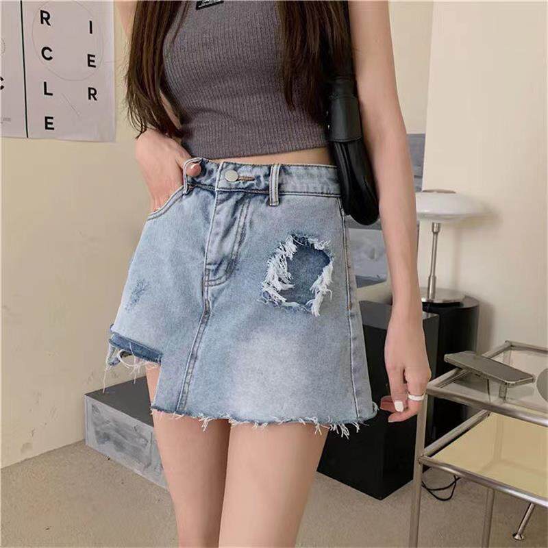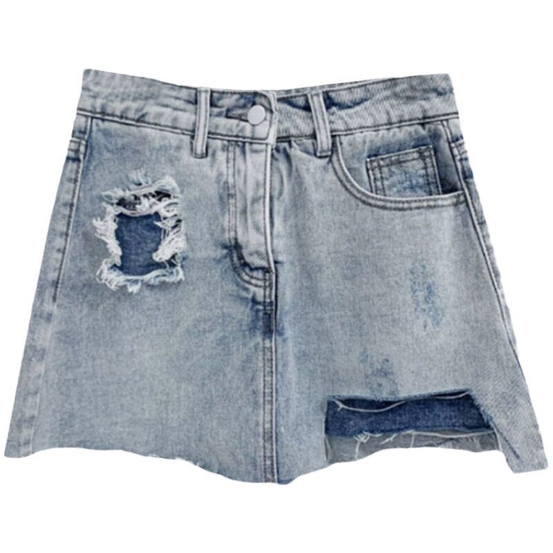 子ins 裙A字包臀短裙裤 大码 不规则破洞牛仔半身裙女夏腰短裤