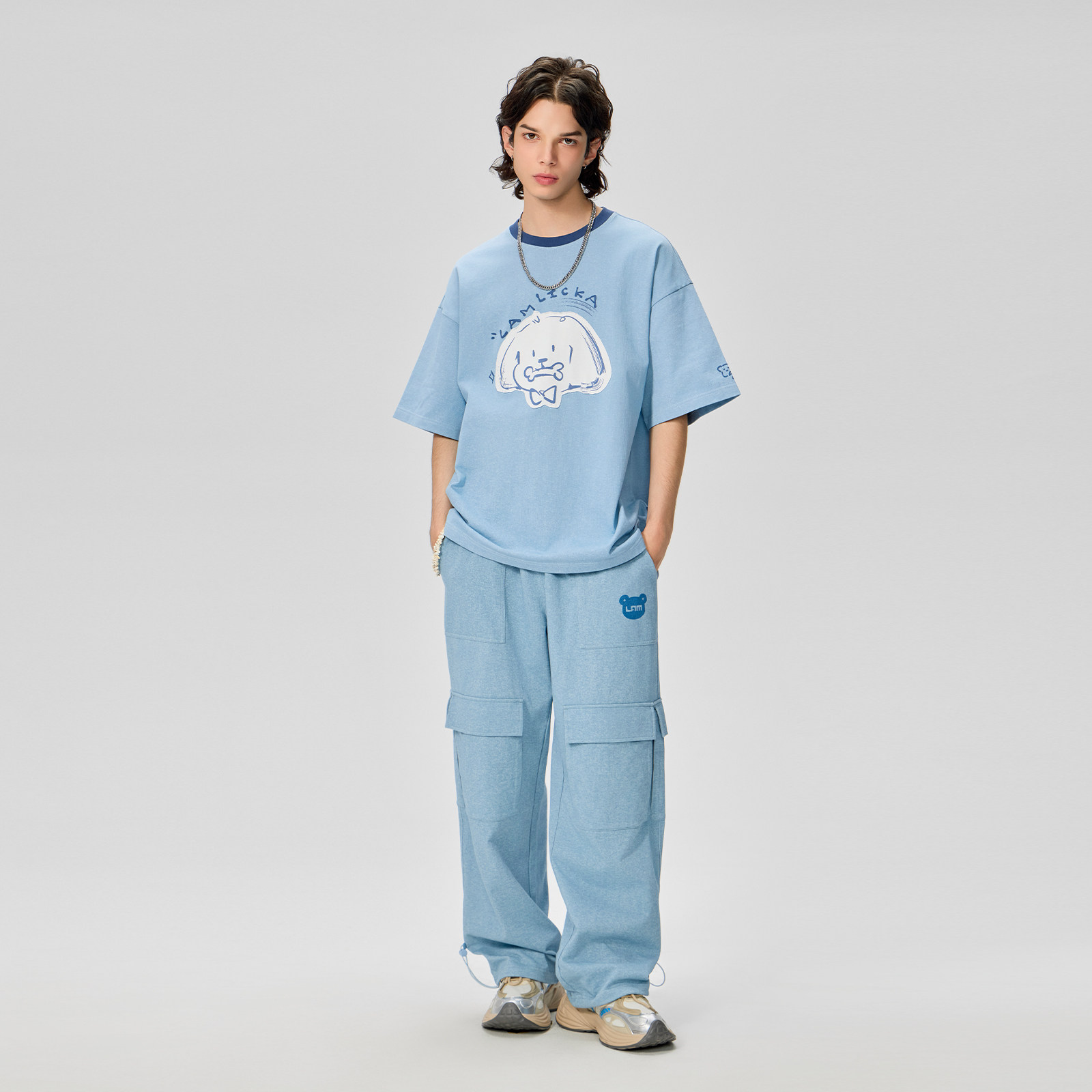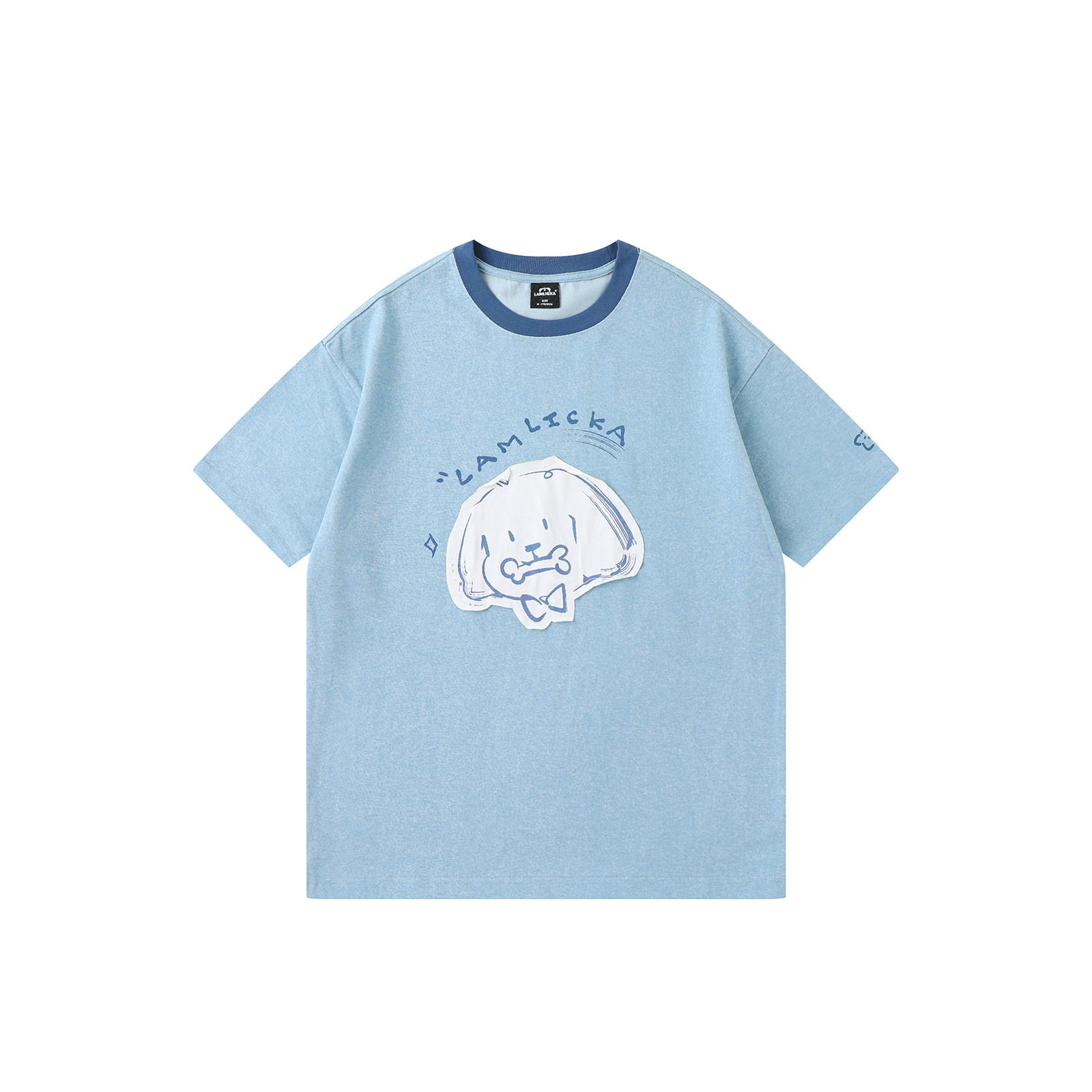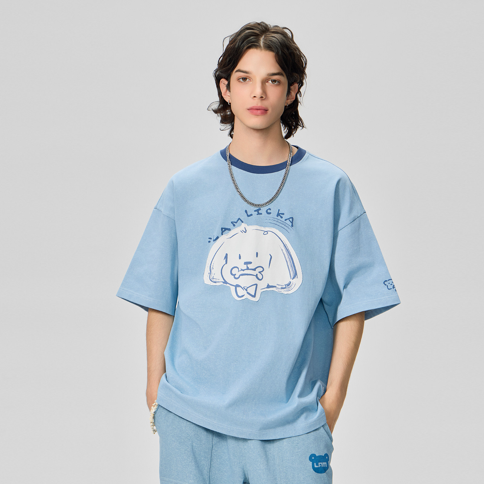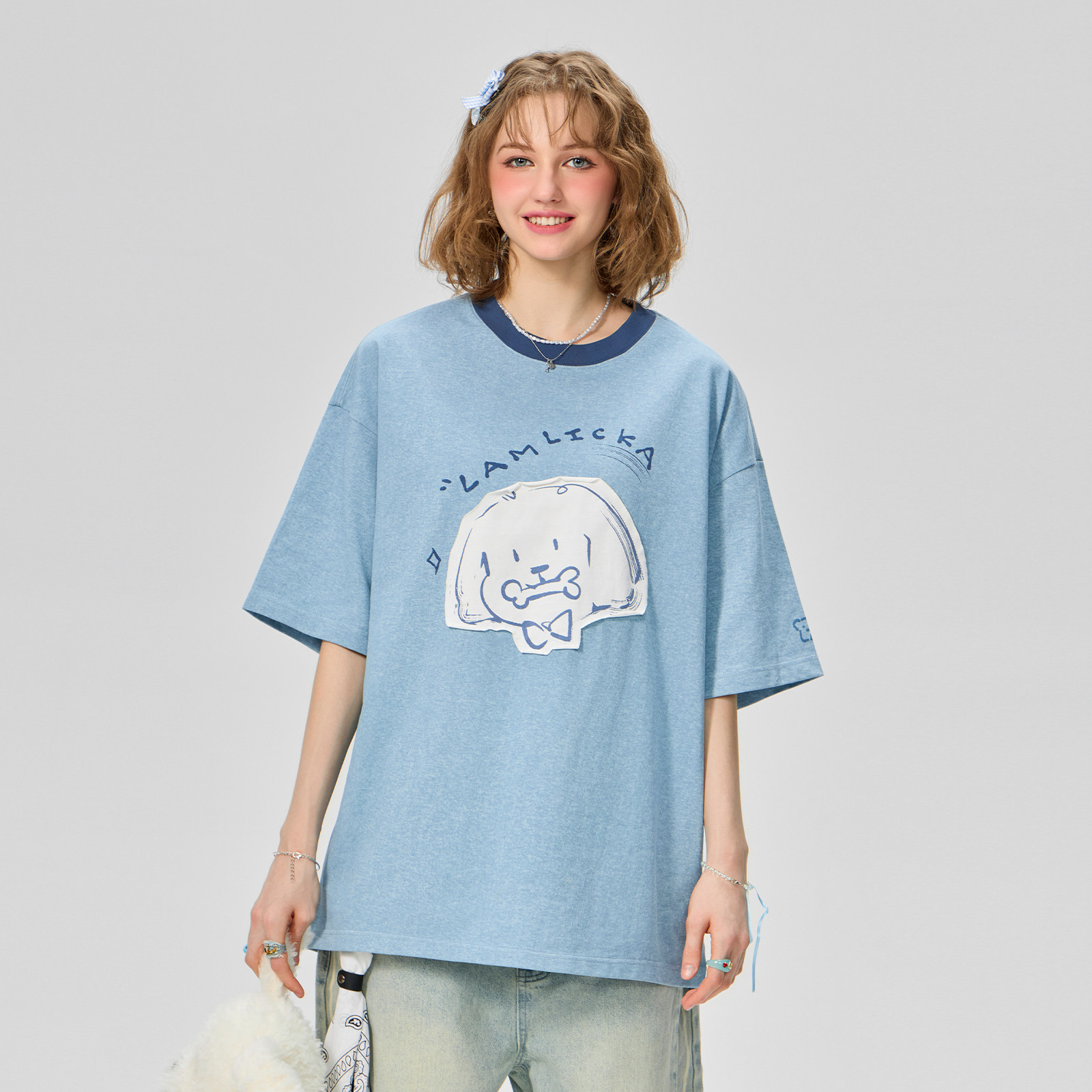 圆领宽松上衣 t恤男春夏重磅情侣装 LAMLICKA周深同款 小狗贴布短袖