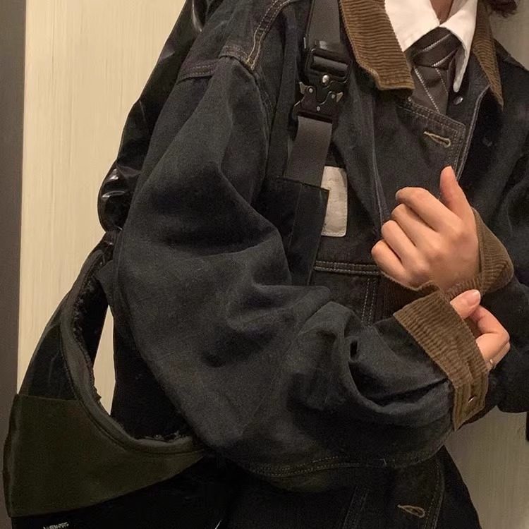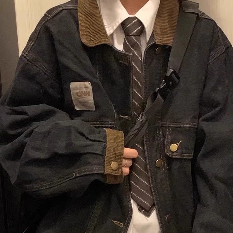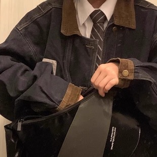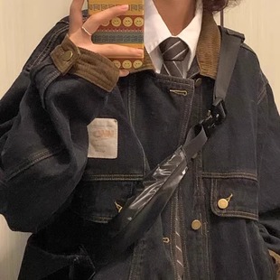 复古拼接少年感牛仔外套男女春秋季 中性风宽松痞帅百搭夹克牛仔衣